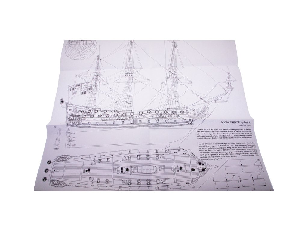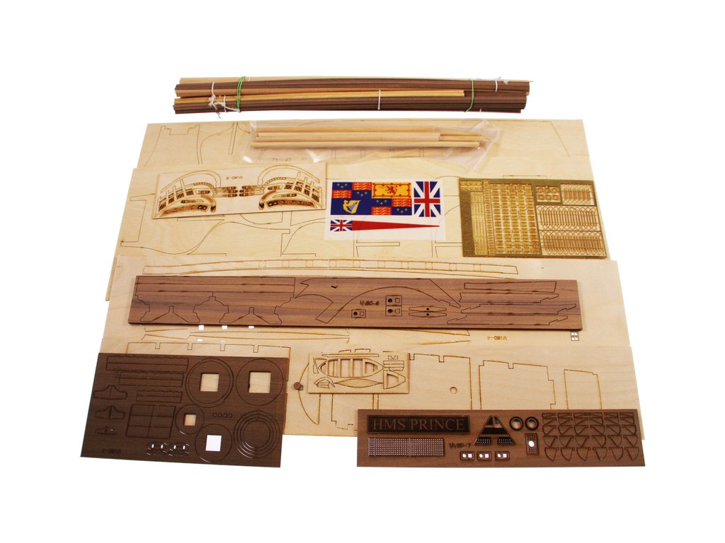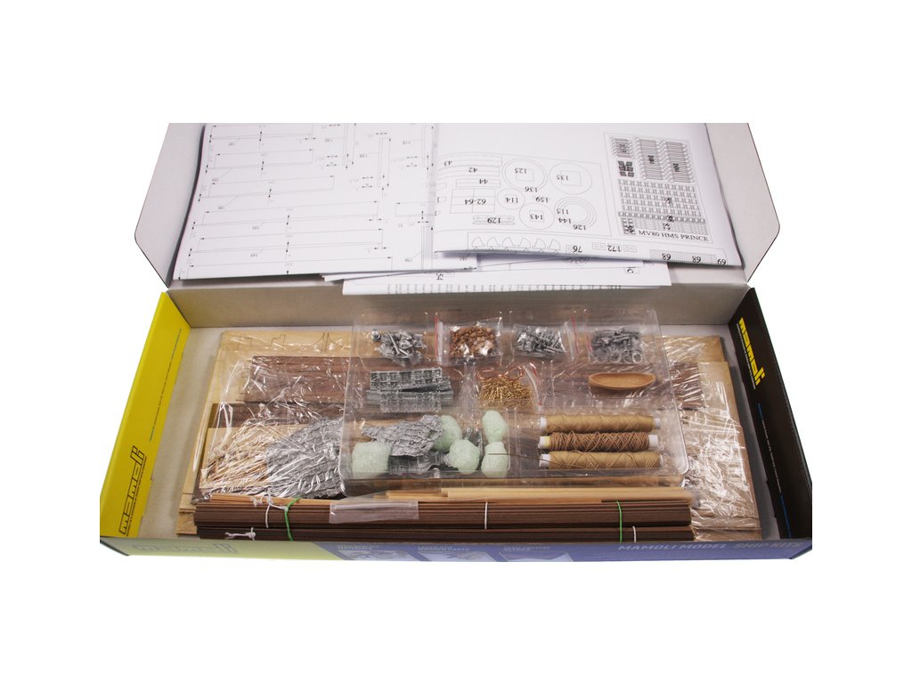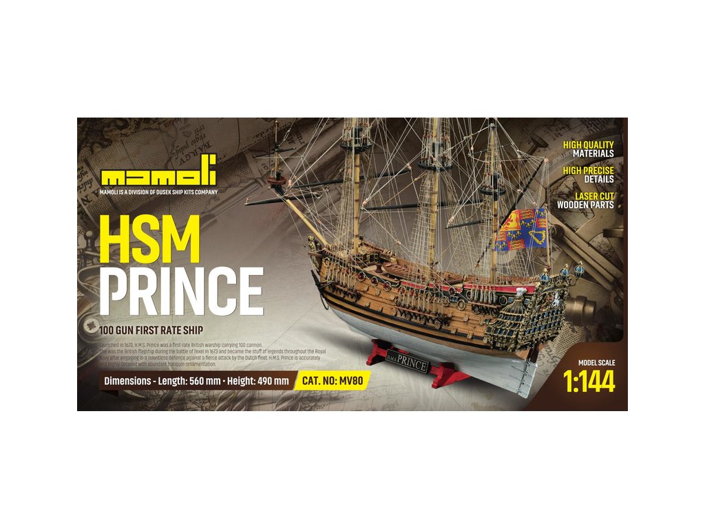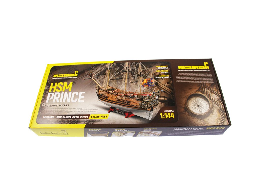 Stavebnice neplovoucího modelu lodi MAMOLI H.M.S. Prince 1670 v měřítku 1:144. Délka modelu 560 mm, výška 490 mm. Stavba převážně ze dřeva s drobnými doplňky, součástí je stavební plán. Prince byla prvotřídní britská válečná loď nesoucí 100 děl.