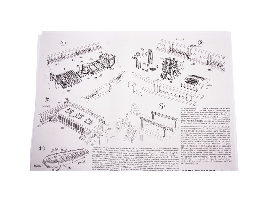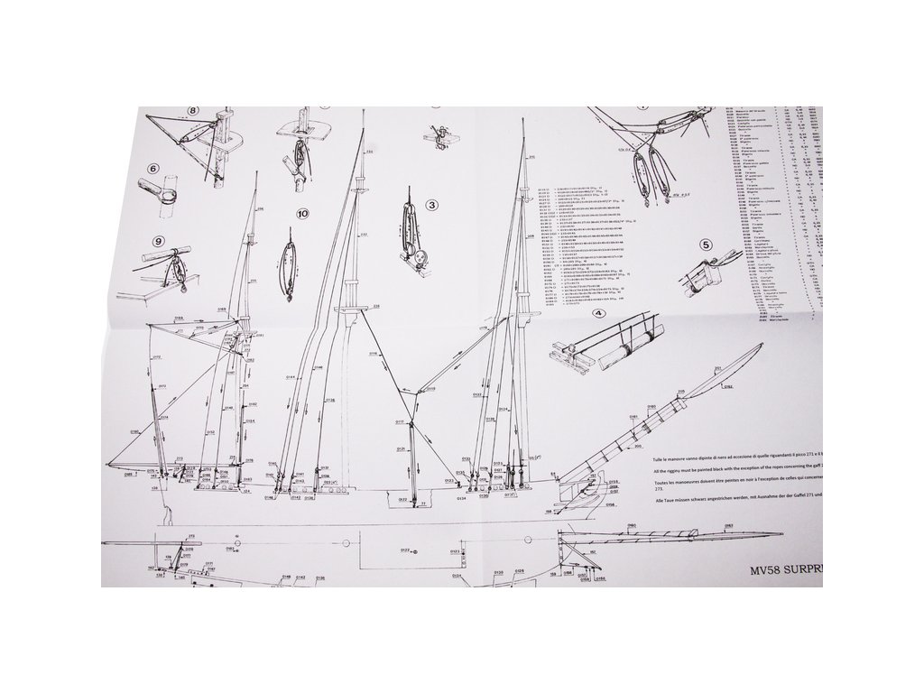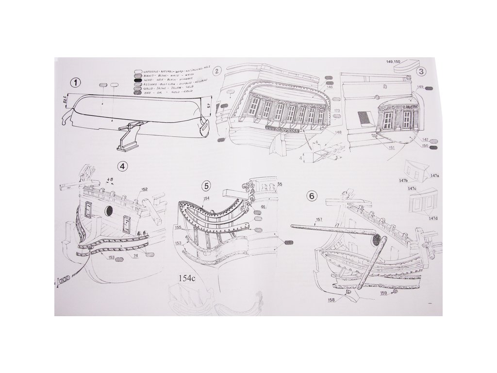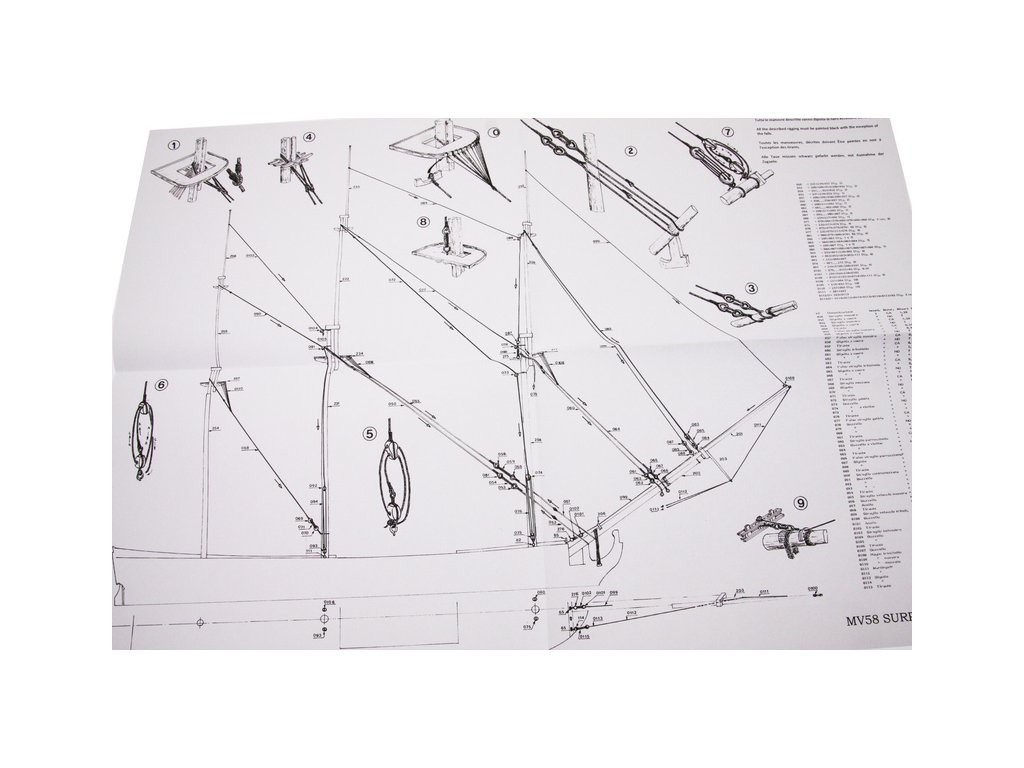 Set obsahuje kompletní sadu výkresové dokumentace modelu v měřítku 1:1 s obrázky jednotlivých detailů. Na výkrese jsou v měřítku nakresleny montážní sestavy, jejich kompletace a to včetně stěžňů a ráhen a způsob vázání lanoví. Vícejazyčný postup stavby rámcově upravuje logické sestavení jednotlivých komponentů.