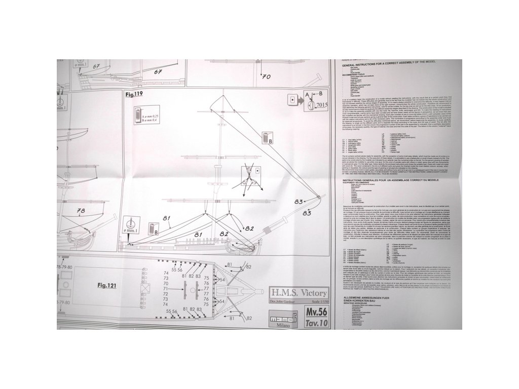 Stavebnice neplovoucího modelu MAMOLI H.M.S. Victory v měřítku 1:150 z roku 1765. Stala se slavnou, když se 21. října 1805 zúčastnila jako vlajková loď admirála Nelsona v bitvě u Trafalgaru, ve které Angličané porazili francouzsko-španělskou flotilu. Délka 564mm, výška 475mm.