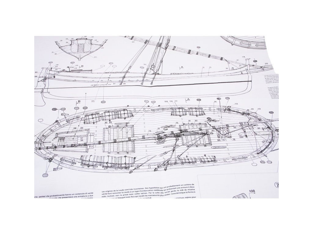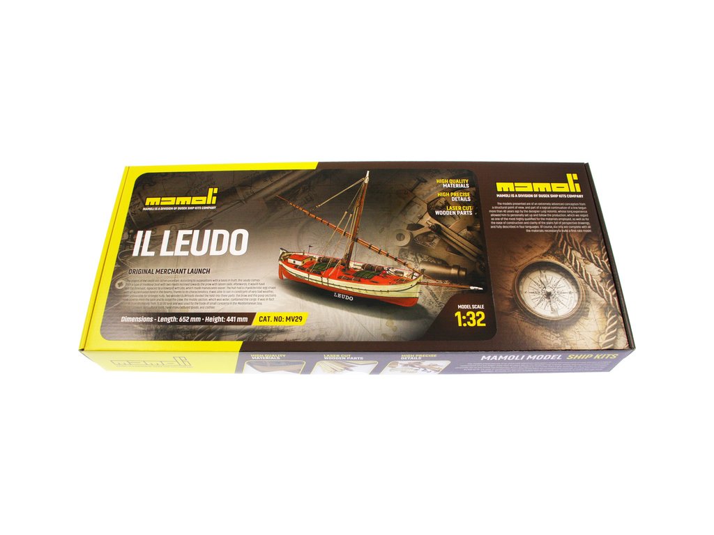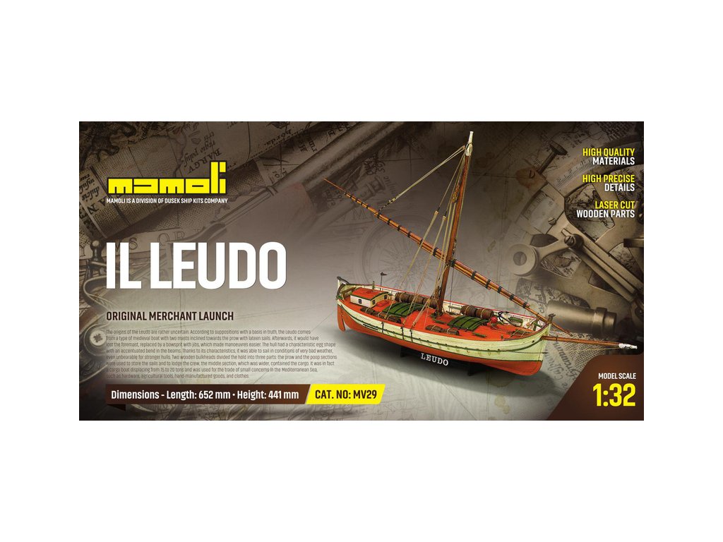 Stavebnice neplovoucího historického modelu plachetní lodi MAMOLI Il Leudo v měřítku 1:32. Původ lodě je dost nejistý. Pravděpodobně je Leudo středověká loď se dvěma stěžni nakloněnými k přídi se skasanými plachtami. V balení naleznete český návod, dřevěné díly, lišty, kování, lanoví, plány atd.