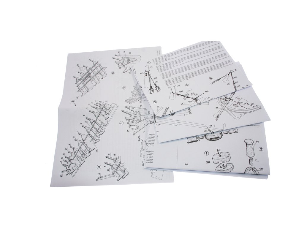 Set obsahuje kompletní sadu výkresové dokumentace s postupem stavby, na výkrese jsou pečlivě označeny díly a je zde i seznam jednotlivých součástí modelu.