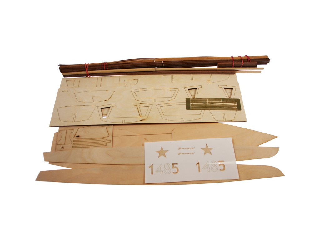 Stavebnice neplovoucího modelu lodi MAMOLI Jenny Star Class v měřítku 1:12. Jenny patří do třídy závodních plachetnic "Star-Class". Celodřevěný model s řadou jemných detailů, v balení jsou dřevěné díly, lišty kování, lanoví, plány atd.