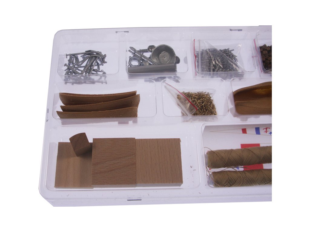 Ke stavbě modelů lodí je nutné vhodné nářadí. Doporučujeme výbornou sadu Modelcraft nářadí pro lodní modeláře (sada 12ks), nebo Modelcraft nářadí pro modeláře (sada 18ks). Dále doporučujeme koupi nylonových svorek a nepostradatelné modelářské špendlíky. Pro úpravu, přesné řezaní, lepení dílů a také jako ochranu stolu doporučujeme modelářskou podložku.