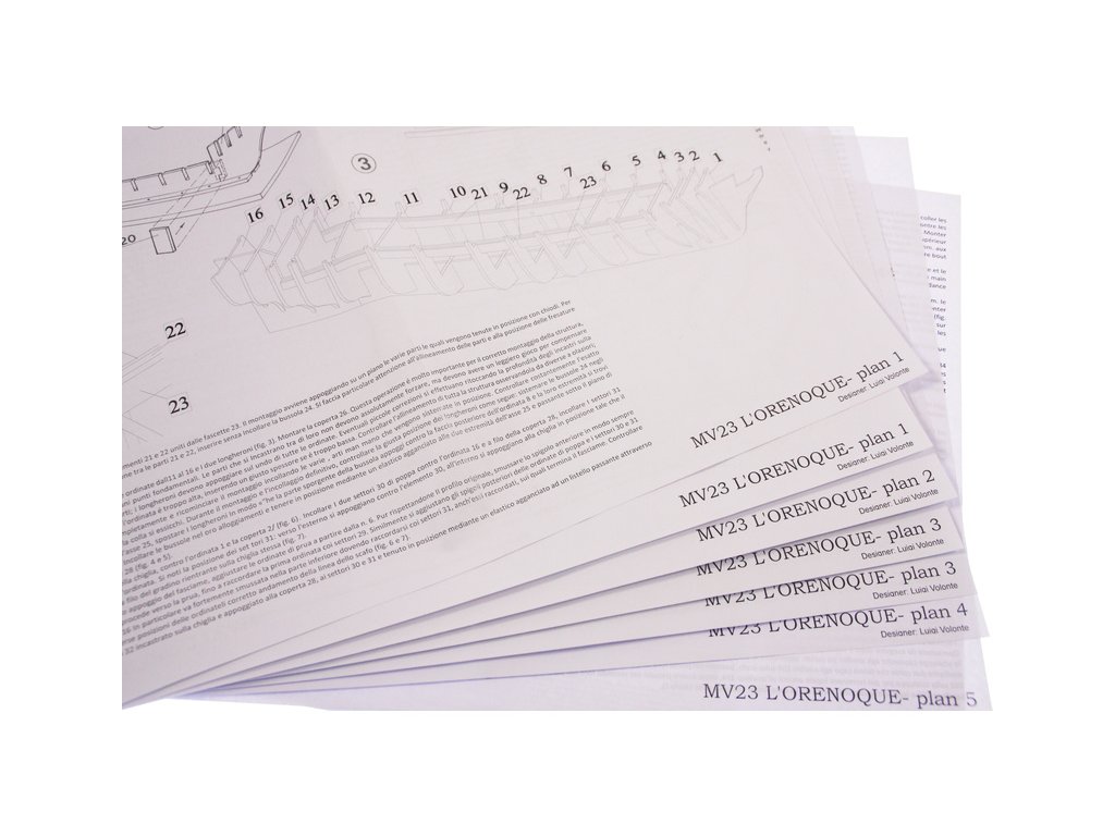 Stavebnice statické makety historické lodi MAMOLI L'Orenoque z roku 1848 v měřítku 1:100 kit. Loď L'Orenoque byla první francouzskou fregatou se smíšeným pohonem plachty-pára, měla typickou stožárovou konstrukci fregat z tohoto období. Byla používána zejména k přepravě vojáků.Výtlak 2568 tun.
