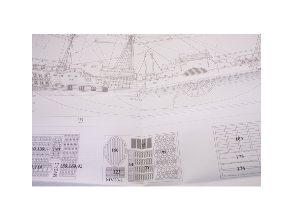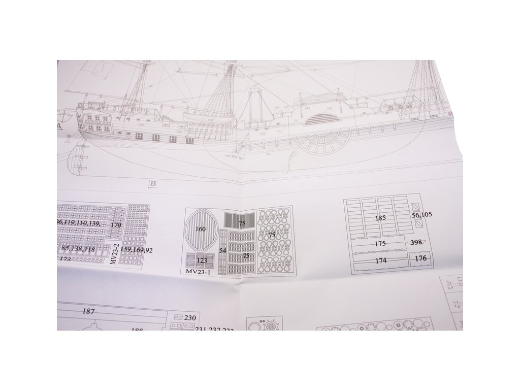 Bohatství nástaveb, charakteristická lopatková kola a klasický stožár, dodávají modelu nový a jedinečný vzhled. Model je v měřítku 1:100, délka 835mm, výška 455mm. Kit je dnes vyráběn moderní laserovou technologií, která zajišťuje vysokou přesnost montáže součástí. Veškeré kování a tvarovky jsou z litého kovu nebo ze dřeva. Modely lodí od Mamoli jsou již po řadu let oblíbeny. Široká škála různých typů modelů a klasické materiály charakterizují tuto sérii.