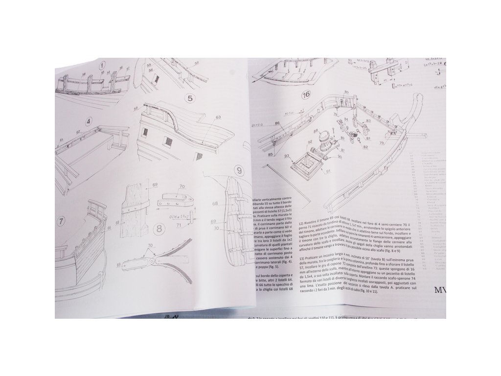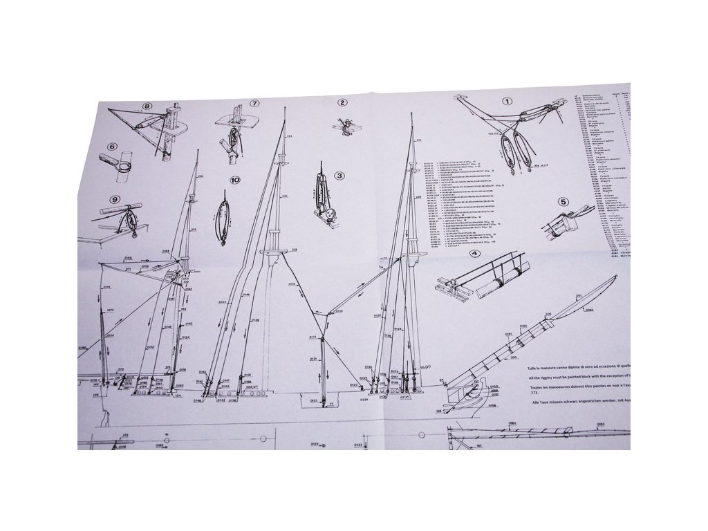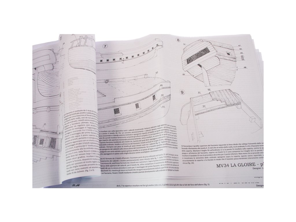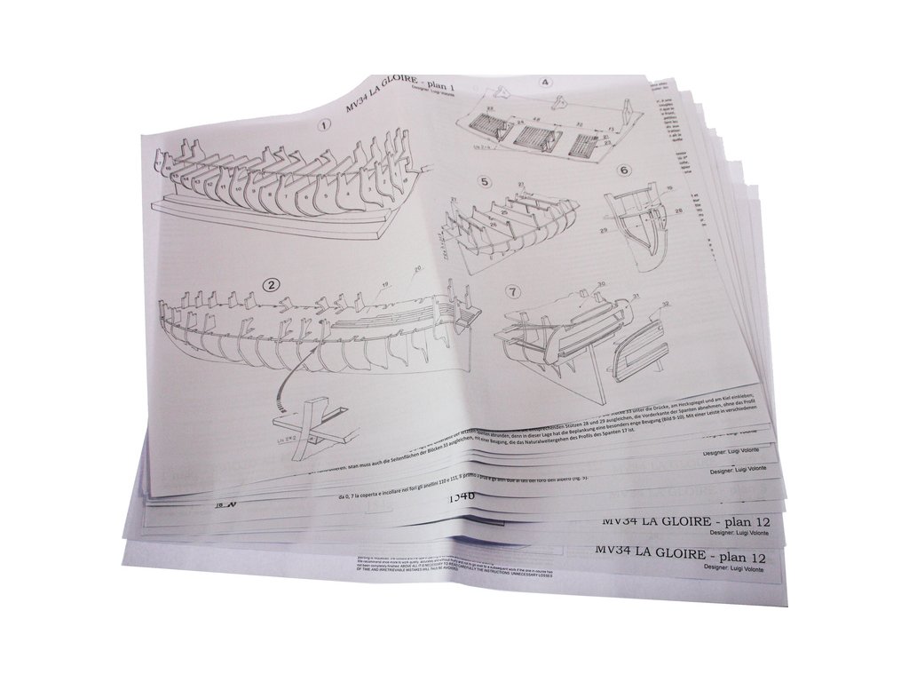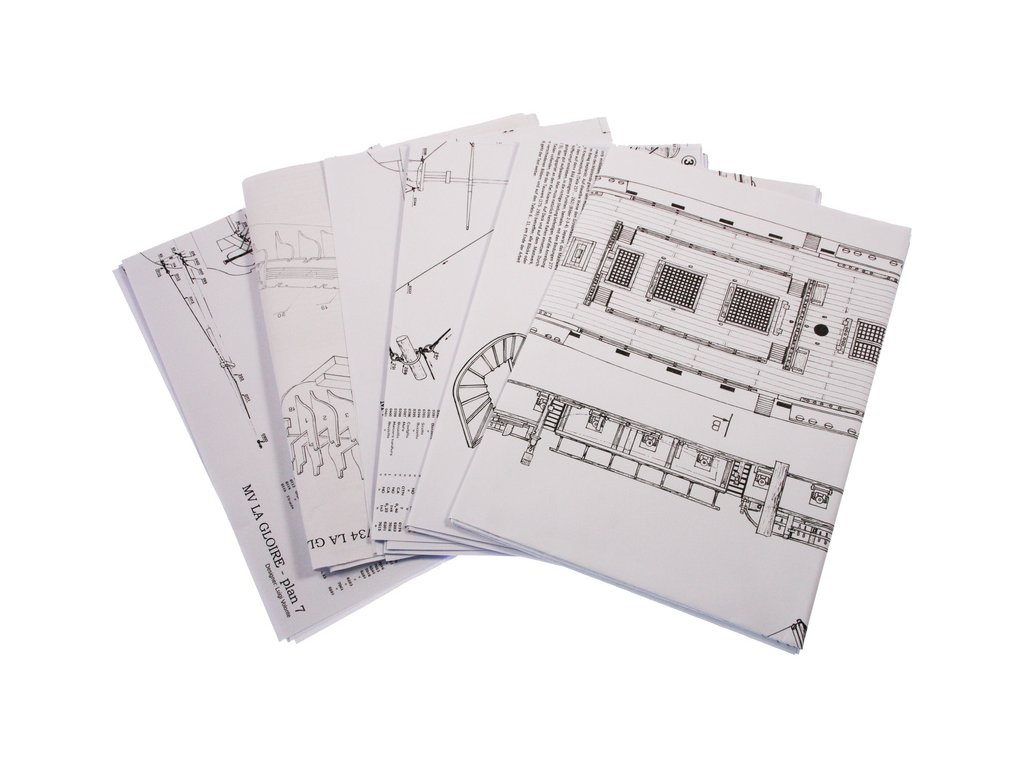 Set obsahuje kompletní sadu výkresové dokumentace modelu v měřítku 1:1 s postupem stavby, na výkrese jsou pečlivě označeny díly a je zde i seznam jednotlivých součástí modelu.