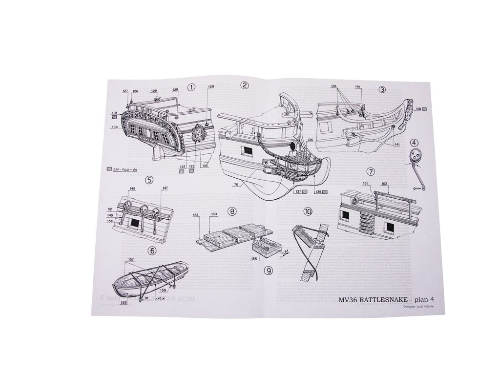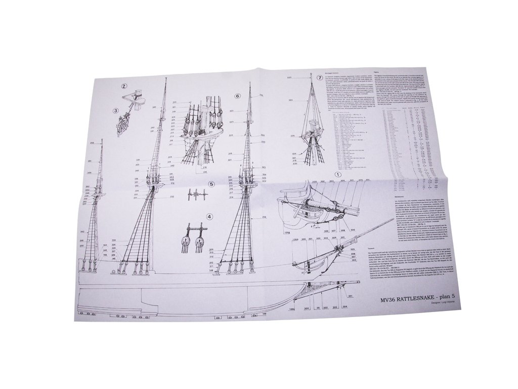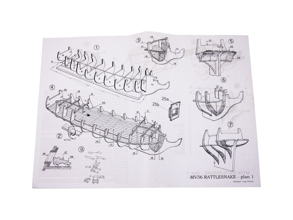 Stavebnice neplovoucího modelu MAMOLI Rattlesnake v měřítku 1:64 z roku 1779. Loď byla vyrobena v Plymouthu, Massachusetts a byla bohatě vybavena 14-20 kanony, posádka se skládala z 85 mužů. Loď byla rychlá, měla štíhlý trup se špičatou přídí. V balení jsou dřevěné díly, lišty a množství kování, lanoví, plány atd.