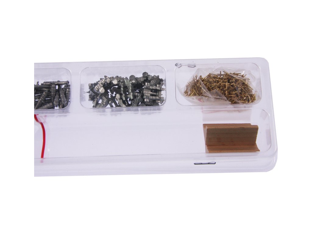Po otevření víka krabice naleznete dřevěné díly modelu z překližky, sadu lišt, drobné součásti uzavřené v plastovém průhledném blistru, sadu výkresů a český návod.
