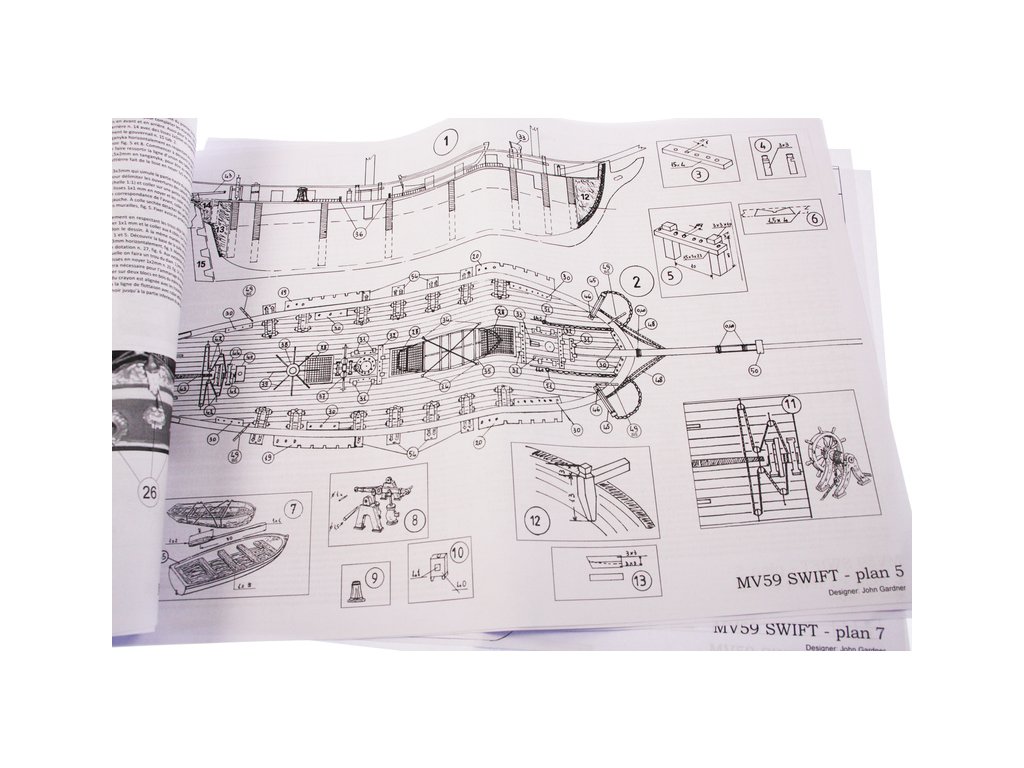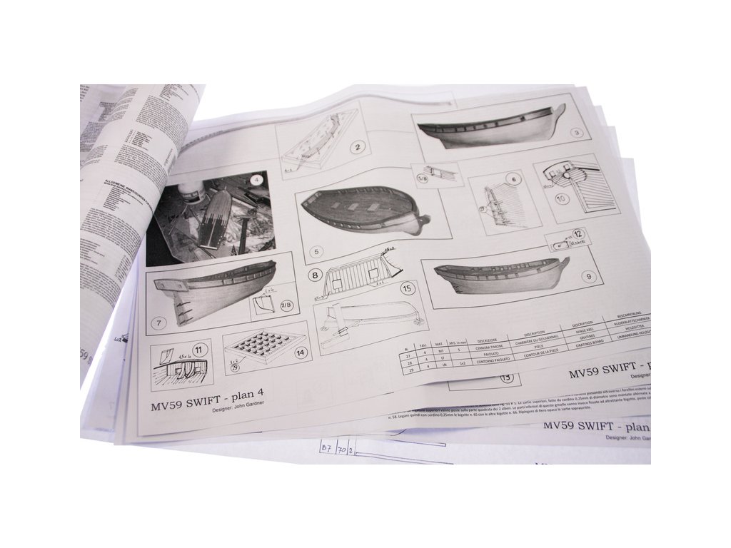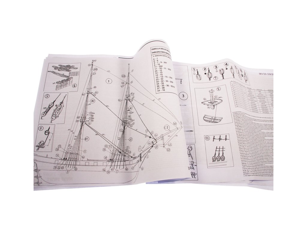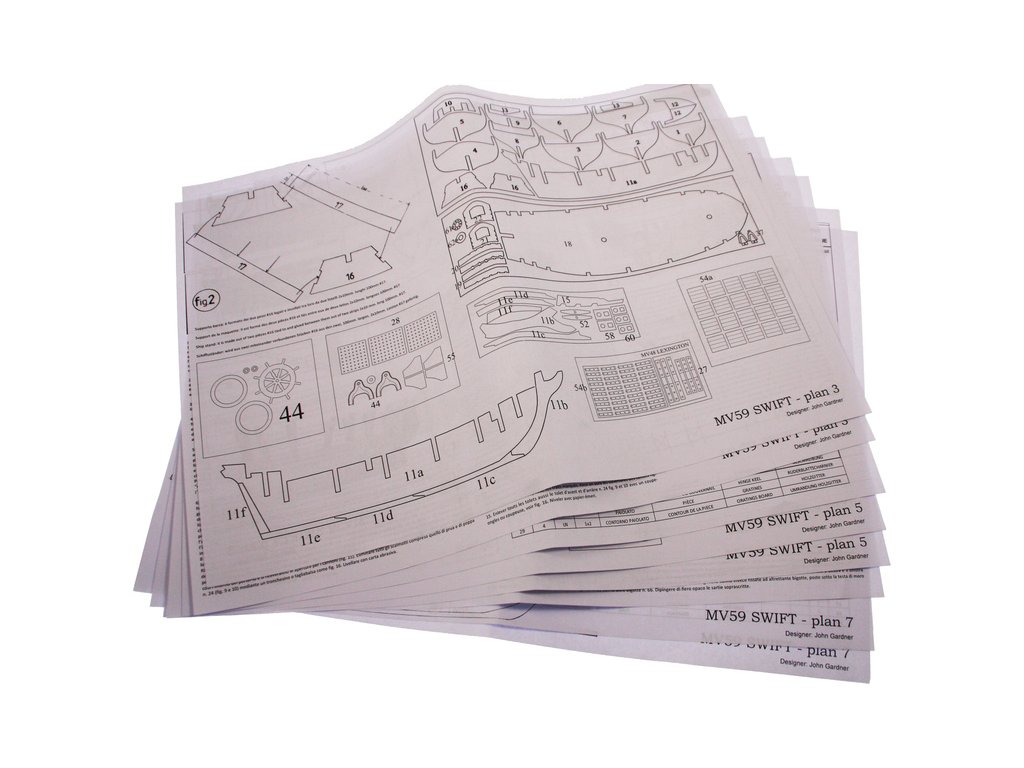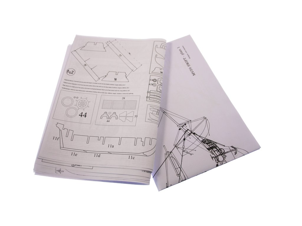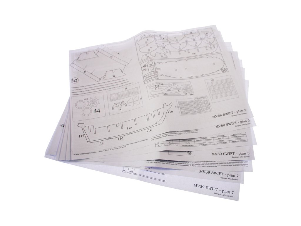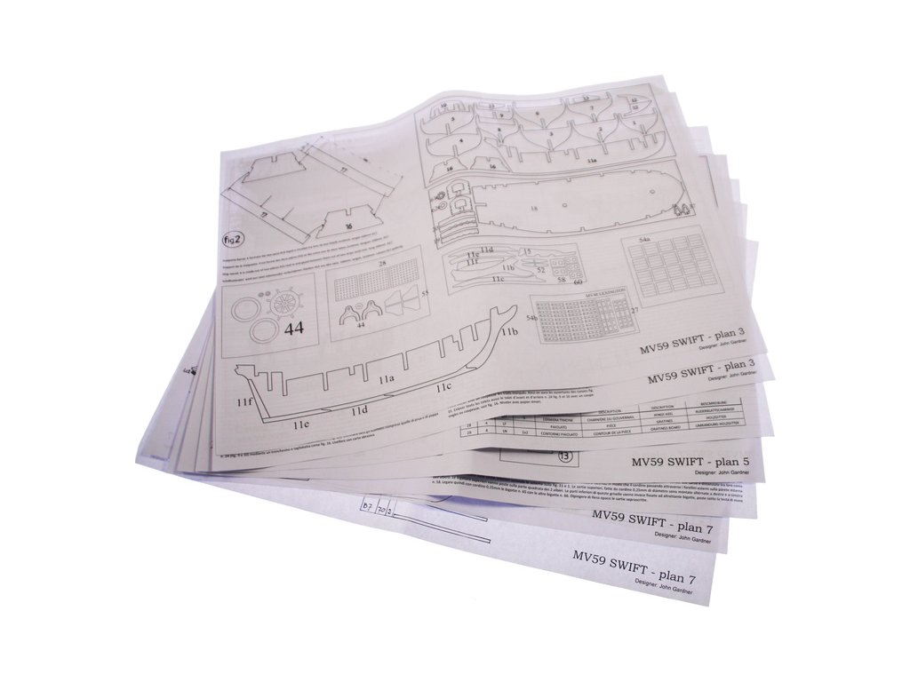 Stavebnice neplovoucího modelu lodi MAMOLI Swift v měřítku 1:70 z roku 1776. HMS Swift byl postaven v roce 1776, pro královské námořnictvo a poté plavil pod britskou vlajkou v letech 1776 až 1778. V balení jsou dřevěné díly, lišty a množství kování, lanoví, návod, plány atd.