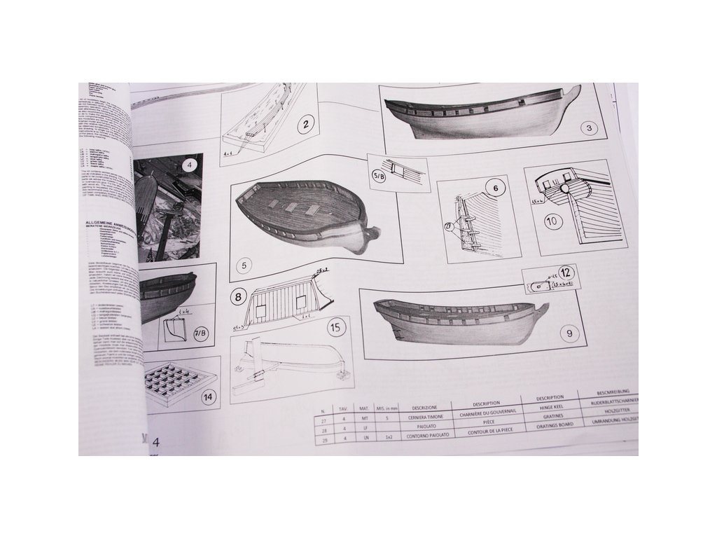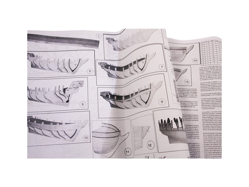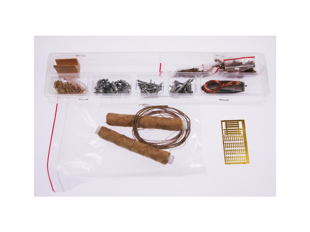 Balení obsahuje sadu překližkových dílů, sadu dřevěných lišt o různém průřezu, blistr s drobnými díly, sadu výkresů, český návod ke stavbě a manuál anglický, německý, francouzský a italský.