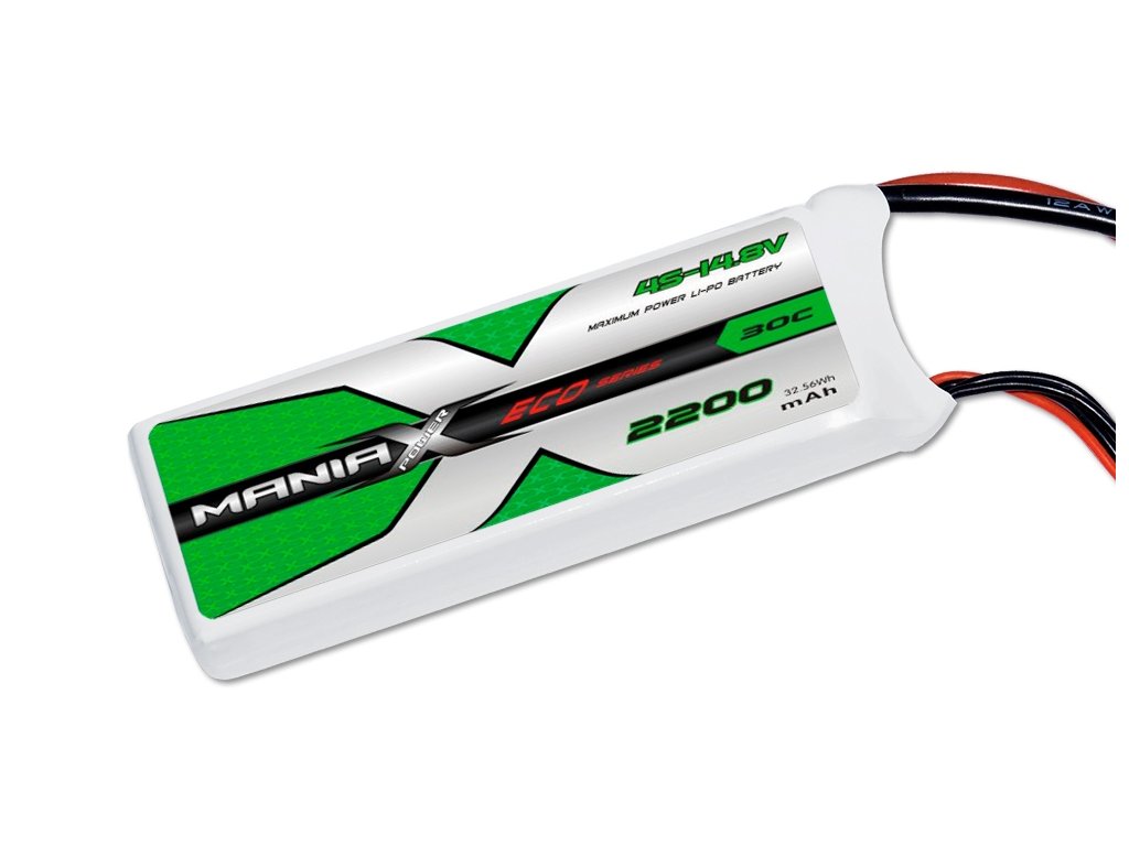 Lithiumpolymerové akumulátory ManiaX řady ECO 30/60C spolehlivě pokrývají potřeby rekreačního modeláře: mají maximální vybíjecí proud 30C, možnost rychlého nabíjení 1-3C, širokou škálu kapacit (450-5000 mAh), výbornou dlouhodobou životnost a příznivou cenu.