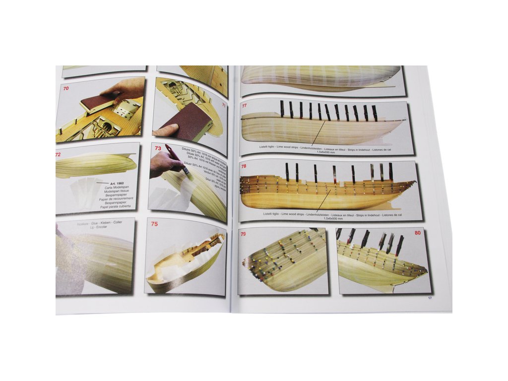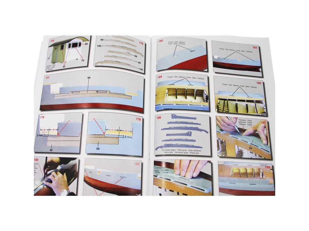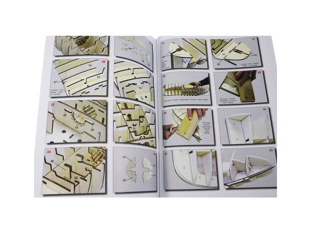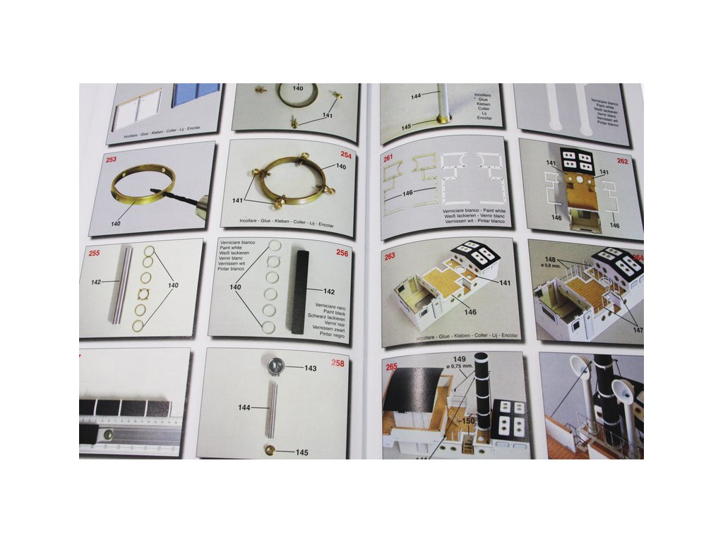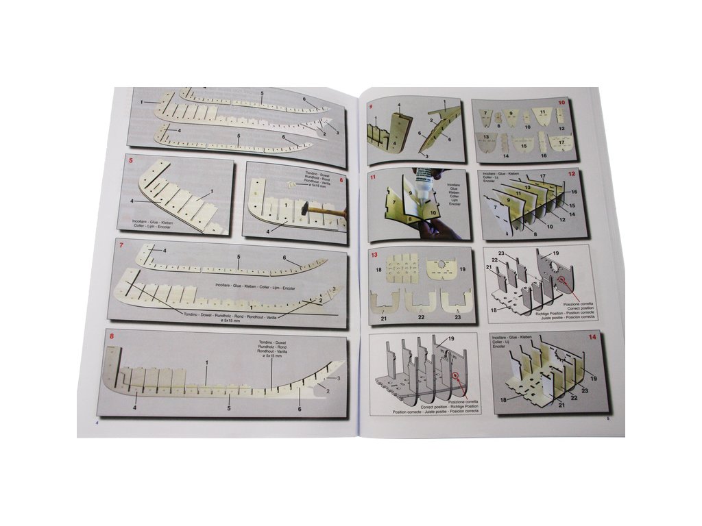 Set obsahuje kompletní sadu výkresové dokumentace modelu v měřítku 1:1 s obrázky jednotlivých detailů. Na výkrese jsou v měřítku nakresleny montážní sestavy, jejich kompletace a to včetně stěžňů a ráhen a způsob vázání lanoví. Vícejazyčný postup stavby rámcově upravuje logické sestavení jednotlivých komponentů.
