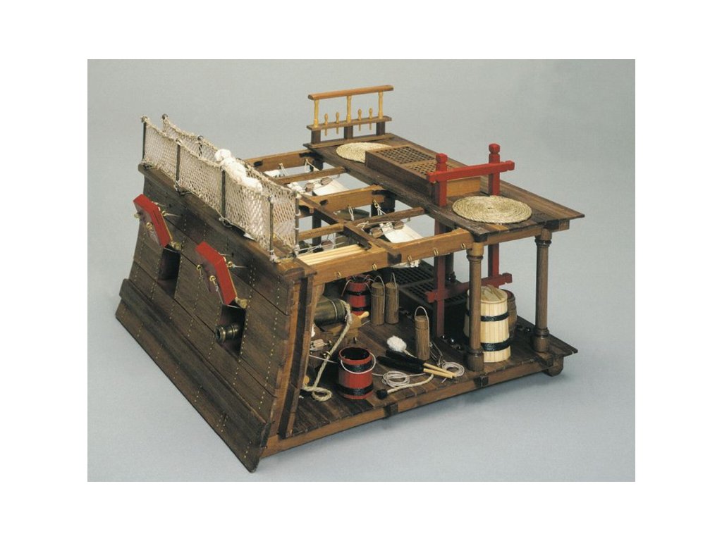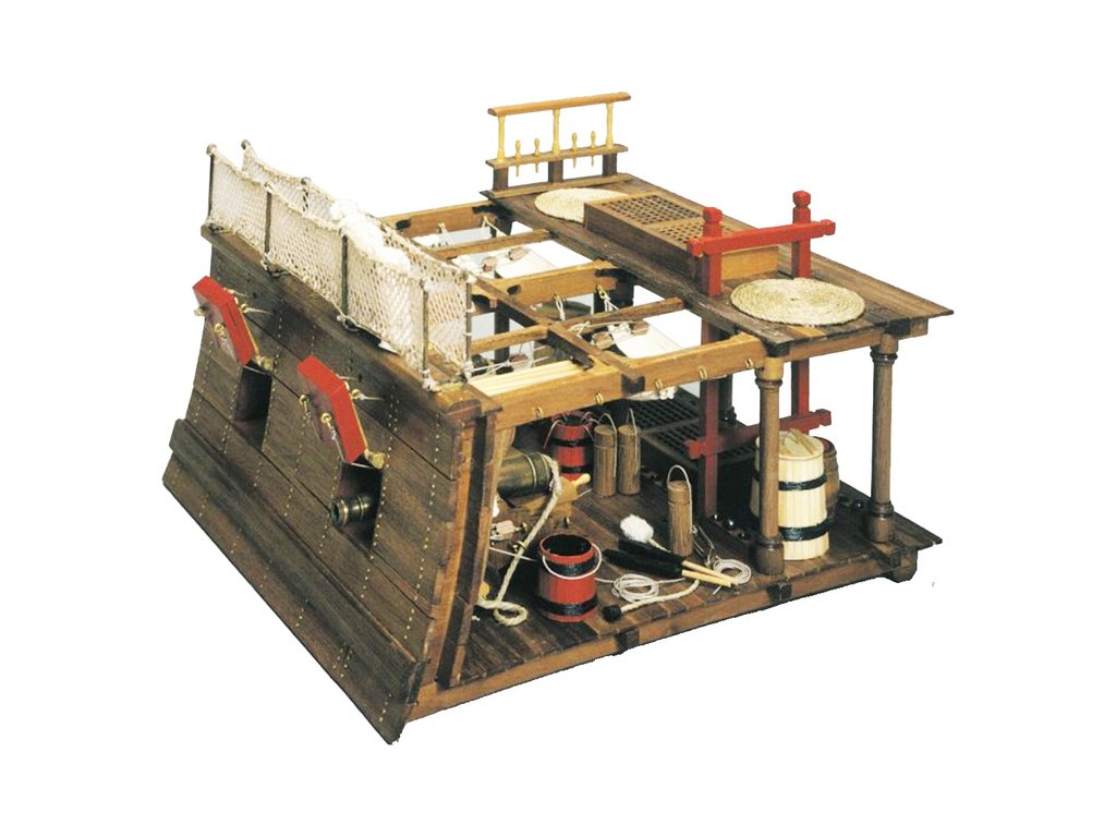 Detailní rekonstrukce části typické britské válečné lodi z počátku 18. století. V tomto období královské námořnictvo získalo skutečnou hegemonii v oceánech, po slavném vítězství nad Napoleonem v bitvě u Trafalgaru v roce 1805. Lord Nelson, možná jeden z nejslavnějších britských hrdinů, velel tehdy nejmocnějšímu námořnictvu. Nelson byl zvěčněn na řadě různých britských uměleckých děl a pomníků, jako je např. Nelsonův sloup na Trafalgarském náměstí v Londýně. Jeho námořnictvo obsahovalo lodě jako HMS Victory, HMS Diana a HMS Agamemnon.
