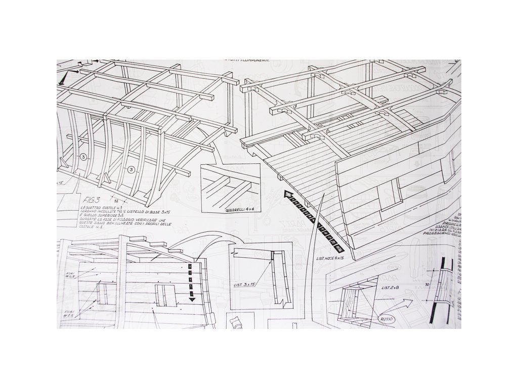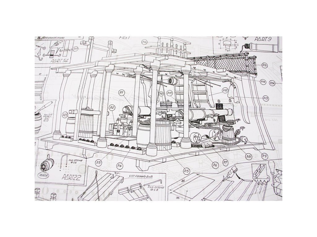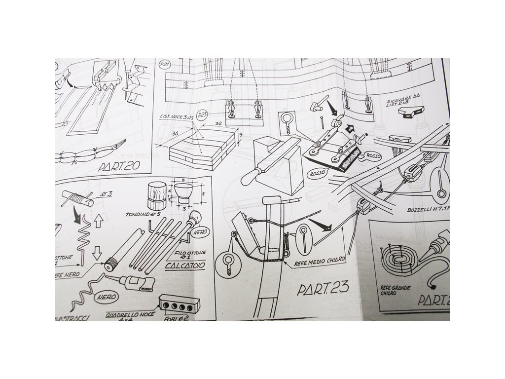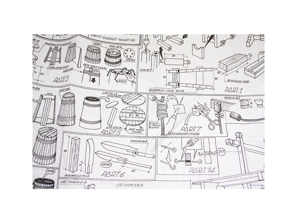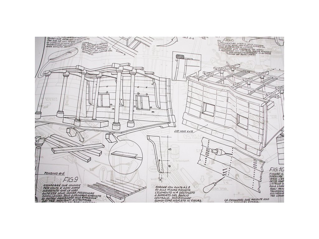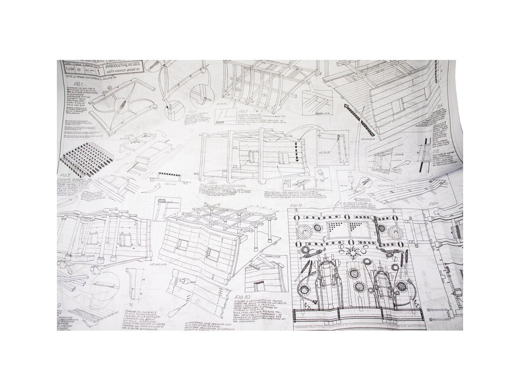 Set obsahuje kompletní sadu výkresové dokumentace modelu v měřítku 1:1 s obrázky jednotlivých detailů. Na výkrese jsou v měřítku nakresleny montážní sestavy, jejich kompletace a to včetně stěžňů a ráhen a způsob vázání lanoví. Vícejazyčný postup stavby rámcově upravuje logické sestavení jednotlivých komponentů.