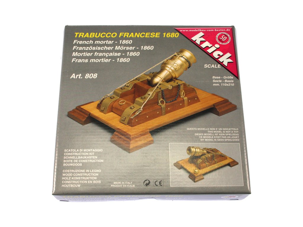 Stavebnice modelu Francouzského hmoždíře v měřítku 1:17. Na konci 17. století byla touto zbraní vybavena většina francouzských pevností. Hlaveň velkého průměru dokázala odpálit projektily ve formě výbušných koulí, nebo třeba železného šrotu jako šrapnelu. Dostřel tohoto předchůdce minometu byl, však velmi krátký. Konstrukce se skládá z předem nařezaných dřevěných dílů a kovových litých ozdob.