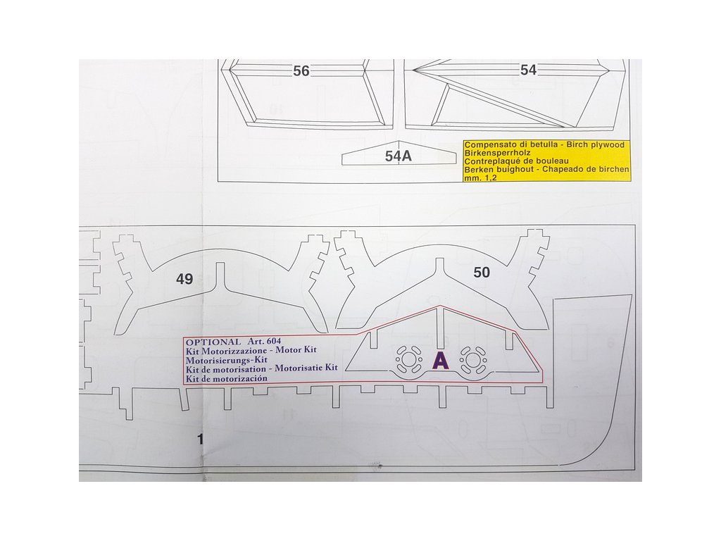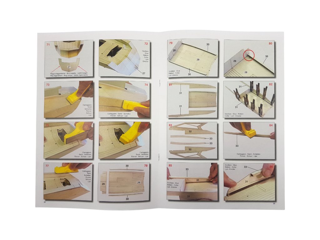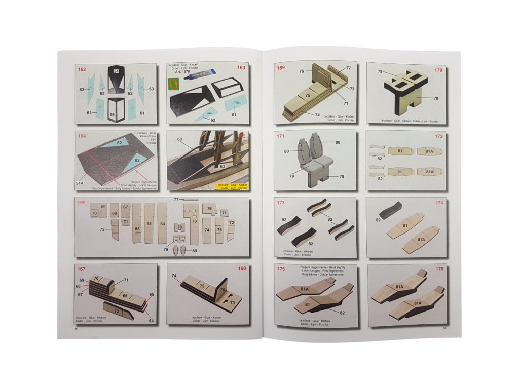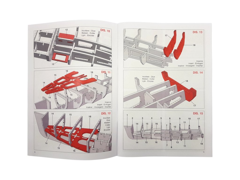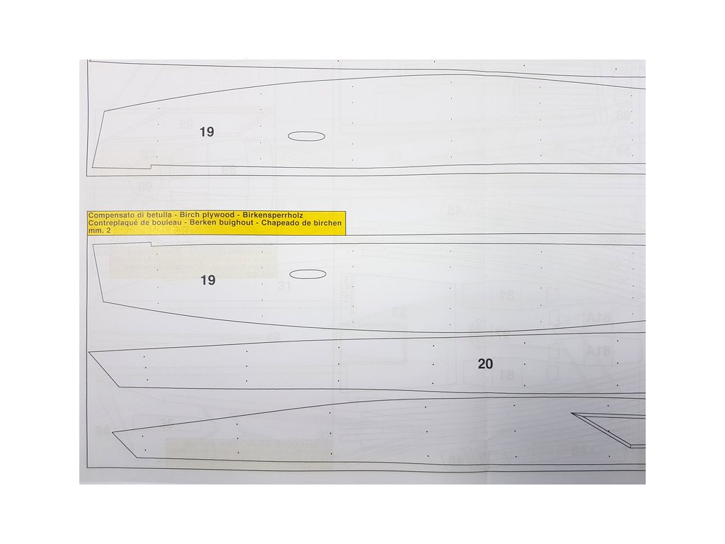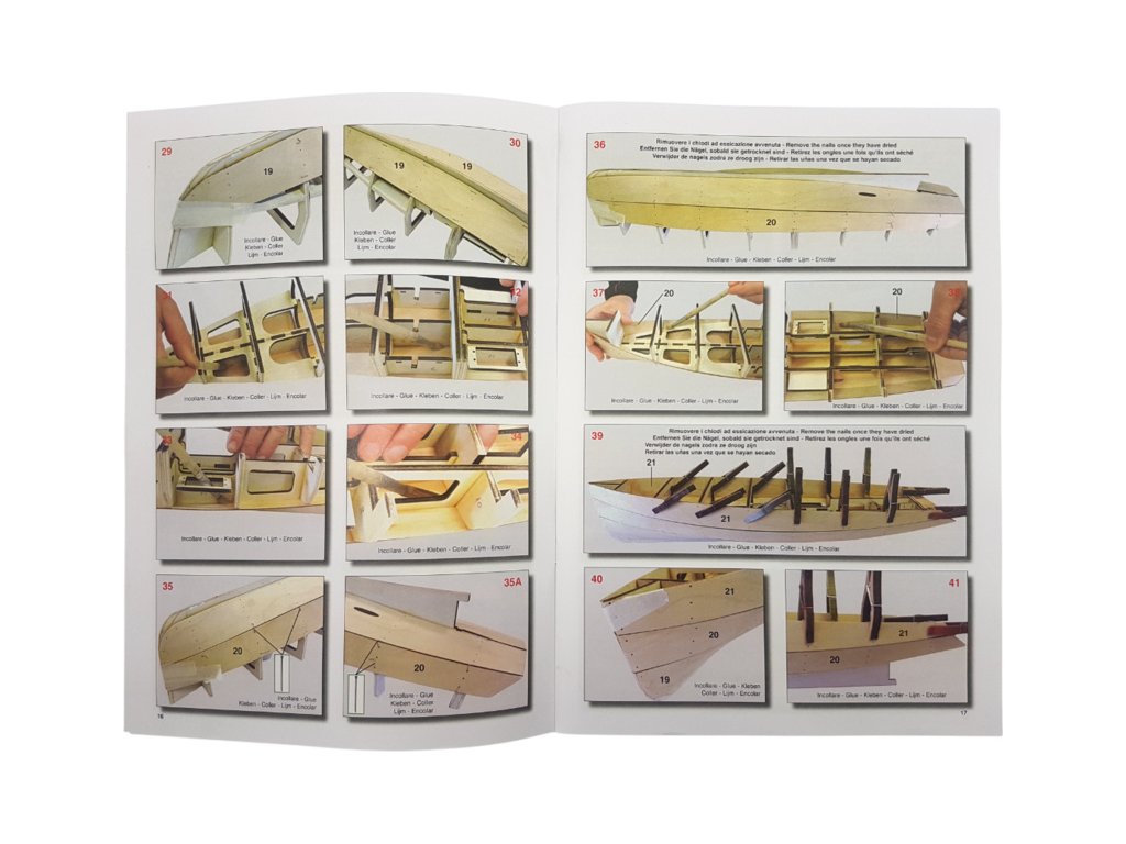 Balení obsahuje laserem řezané překližkové díly, laserem řezaný čirý plast, lišty, 2x hřídel, 2x lodní šroub, páka, spojovací materiál, sada výkresů a vícejazyčný manuál.
