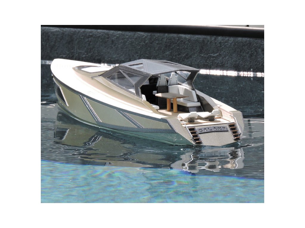 Galaxy je vysoce moderní luxusní superjachta, jaké jsou stále častěji k vidění v bohatých přístavních centrech Středomoří. Délka modelu je 650 mm.