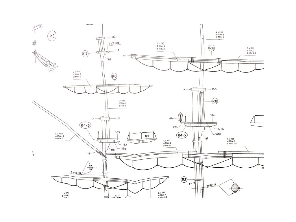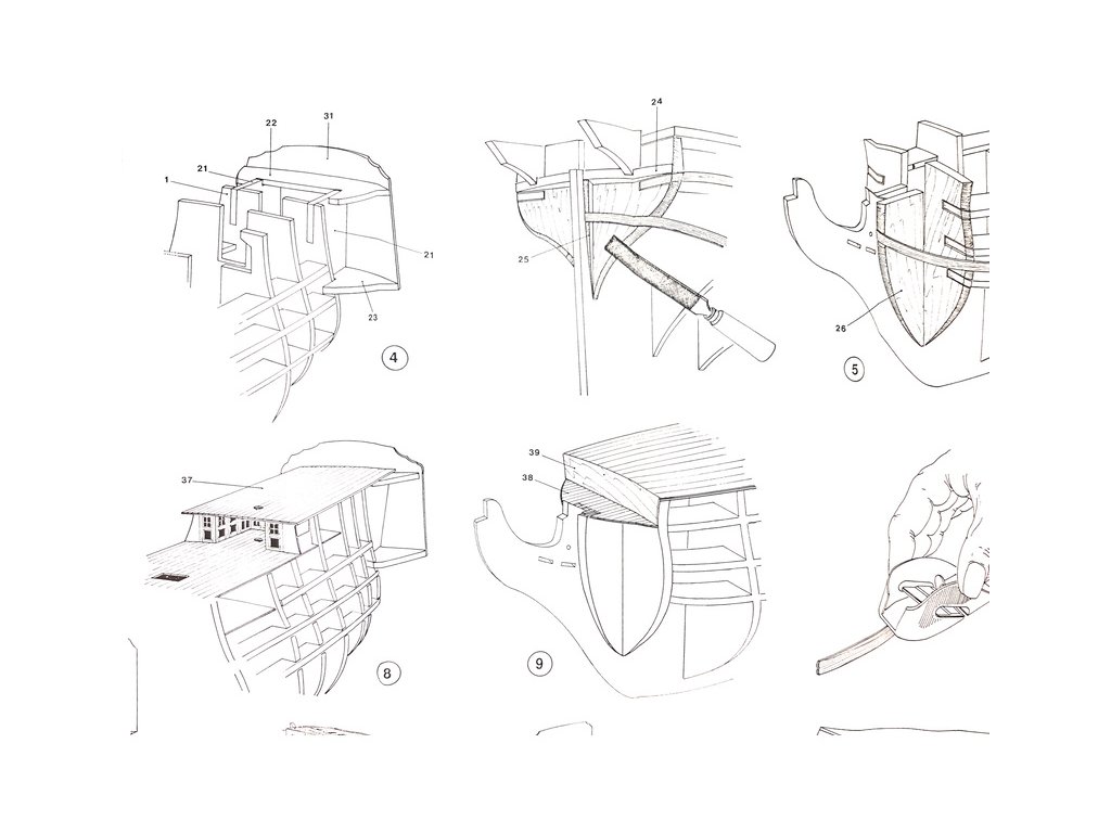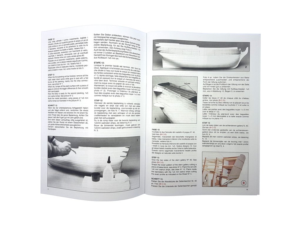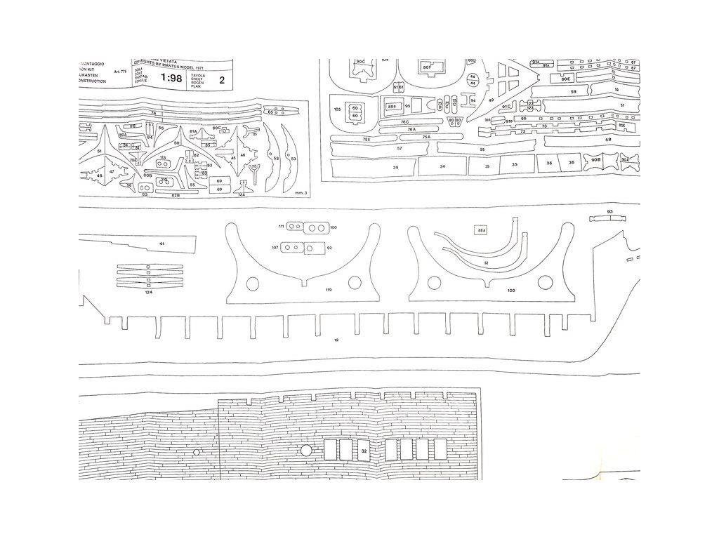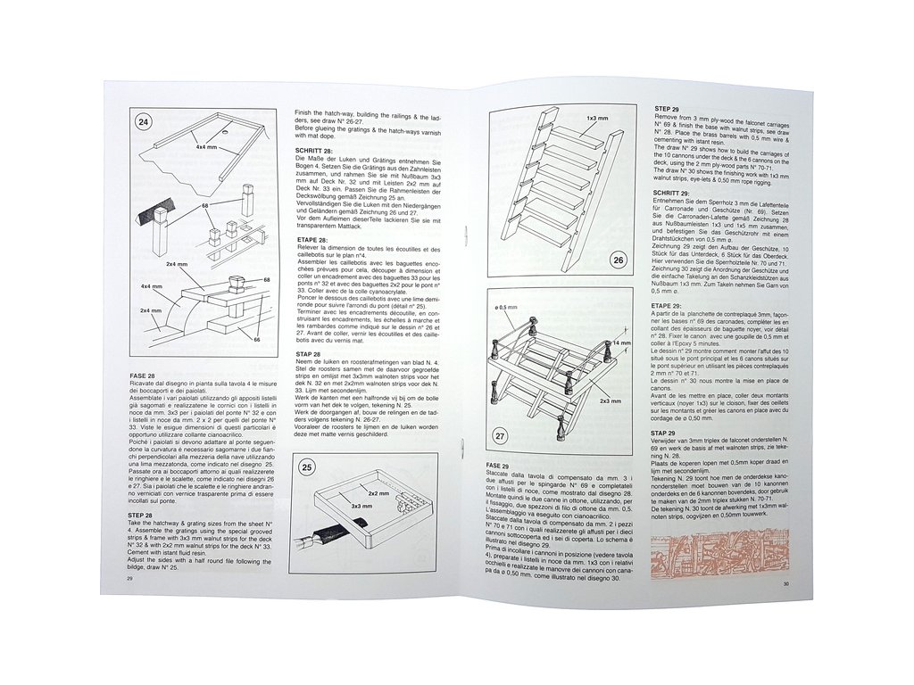 Balení obsahuje sadu překližkových dílů, sadu dřevěných lišt, sáčky s drobnými díly, díly z mosazi, sadu výkresů, český a vícejazyčný manuál.