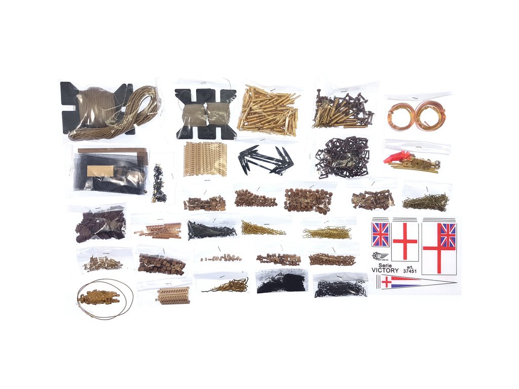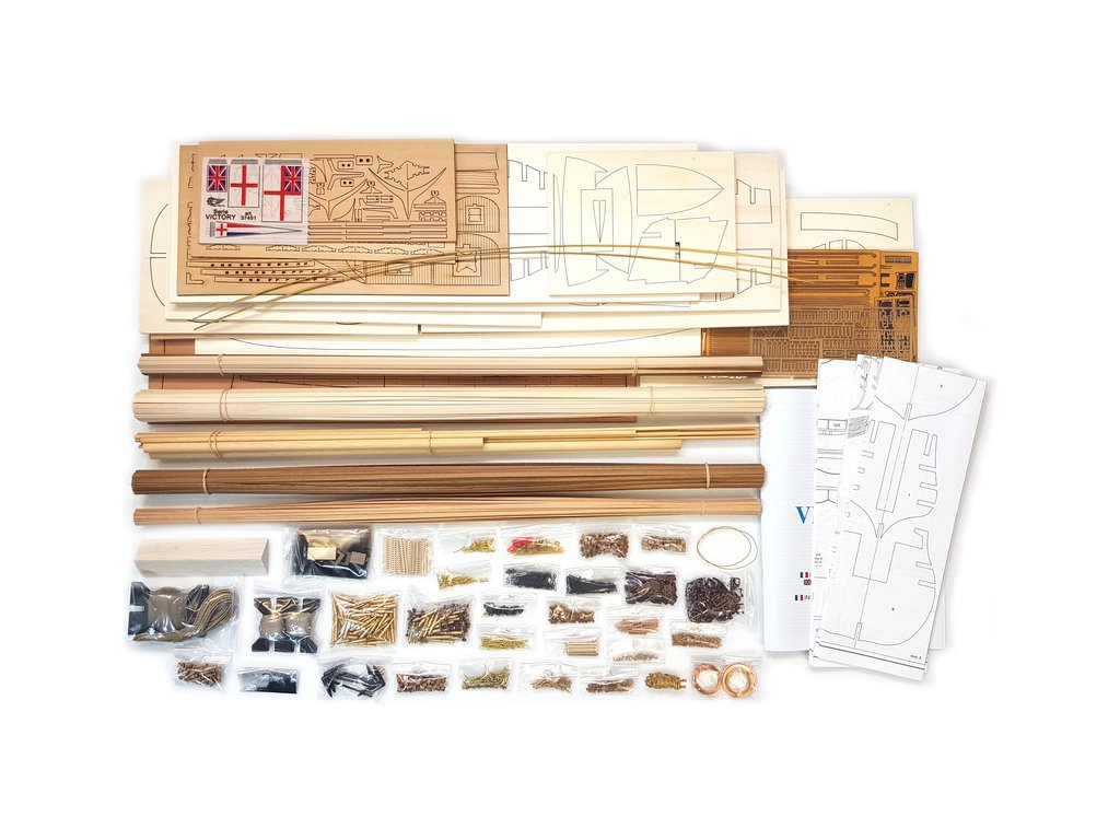 Victory je pravděpodobně jednou z nejslavnějších anglických lodí minulosti. Za svou slávu vděčí nejen své současné existenci v suchém doku v přístavu Portsmouth, kde je magnetem pro turisty, ale i díky své minulosti, kdy byla lodí admirality ve vítězné bitvě u Trafalgaru. Stavebnice Mantua obsahuje všechny dřevěné díly vyřezané laserovou technologií a veškeré kování. Šest stran stavebního plánu a ilustrovaný stavební návod vysvětluje montáž.