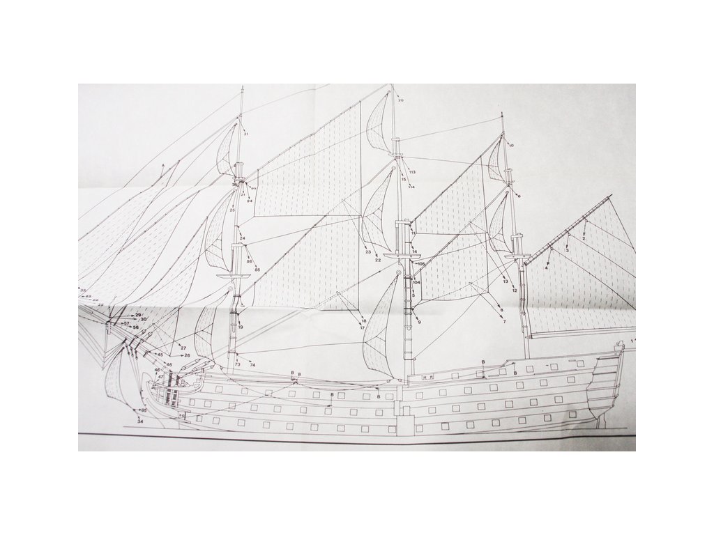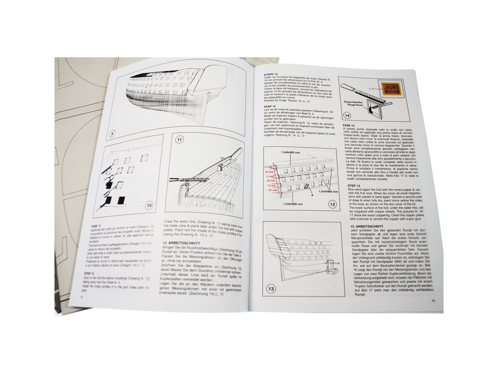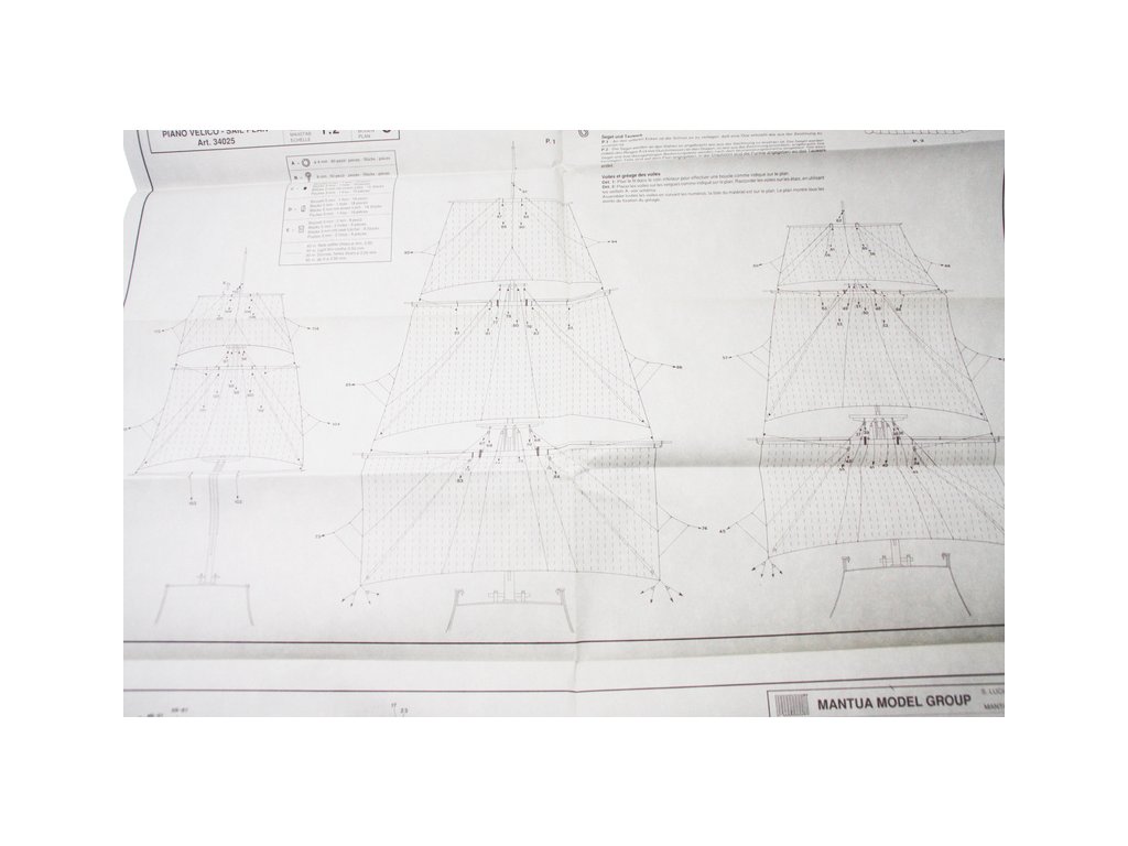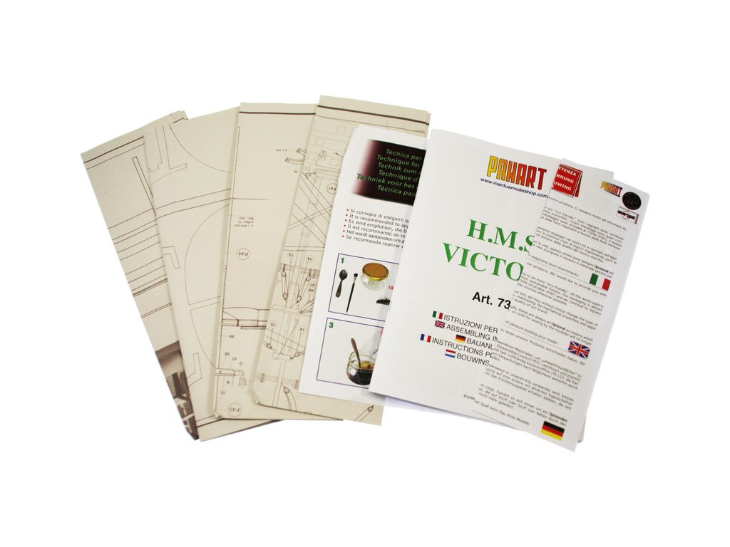 Set obsahuje kompletní sadu výkresové dokumentace modelu v měřítku 1:1 s obrázky jednotlivých detailů. Na výkrese jsou v měřítku nakresleny montážní sestavy, jejich kompletace a to včetně stěžňů a ráhen a způsob vázání lanoví. Vícejazyčný postup stavby rámcově upravuje logické sestavení jednotlivých komponentů.