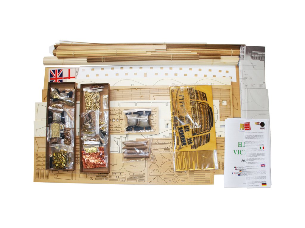 Tato stavebnice představuje skvělý model vlajkové lodi admirála Lorda Nelsona během bitvy u Trafalgaru 21. října 1805 a je nejslavnější z velkých britských bojových lodí. Lze ji vidět v loděnici v Portsmouthu, kde je zachována pro další generace. Osm listů stavebního plánu, které kromě hlavních pohledů obsahují množství perspektivních kreseb, usnadňuje sestavení tohoto atraktivního modelu.