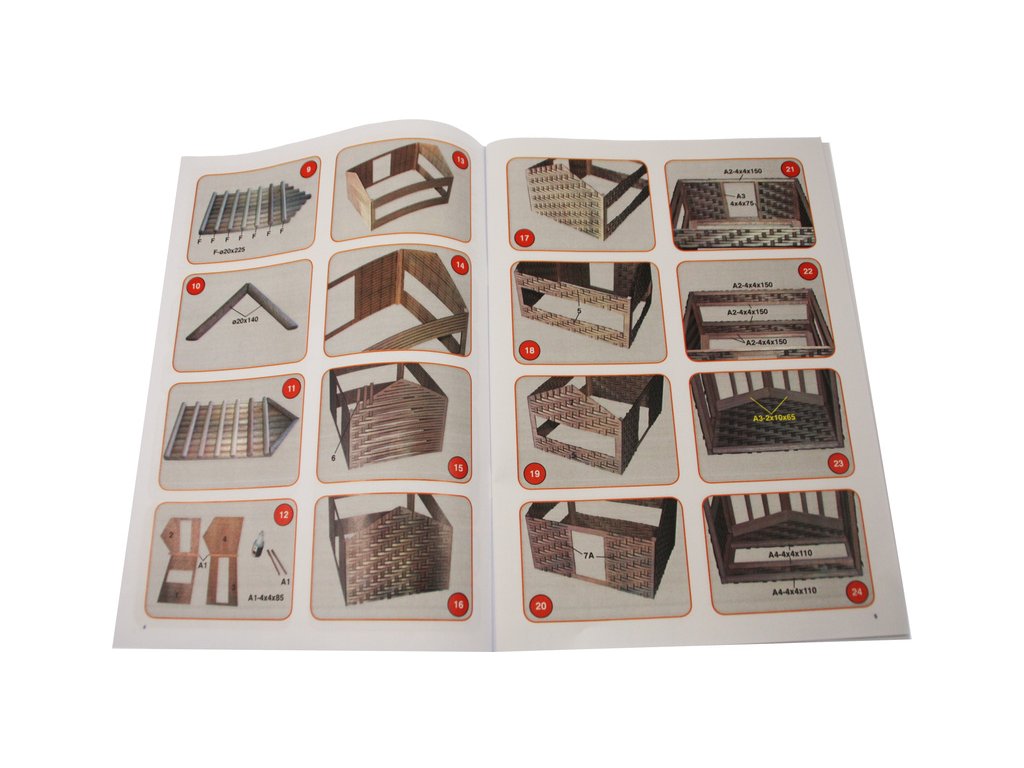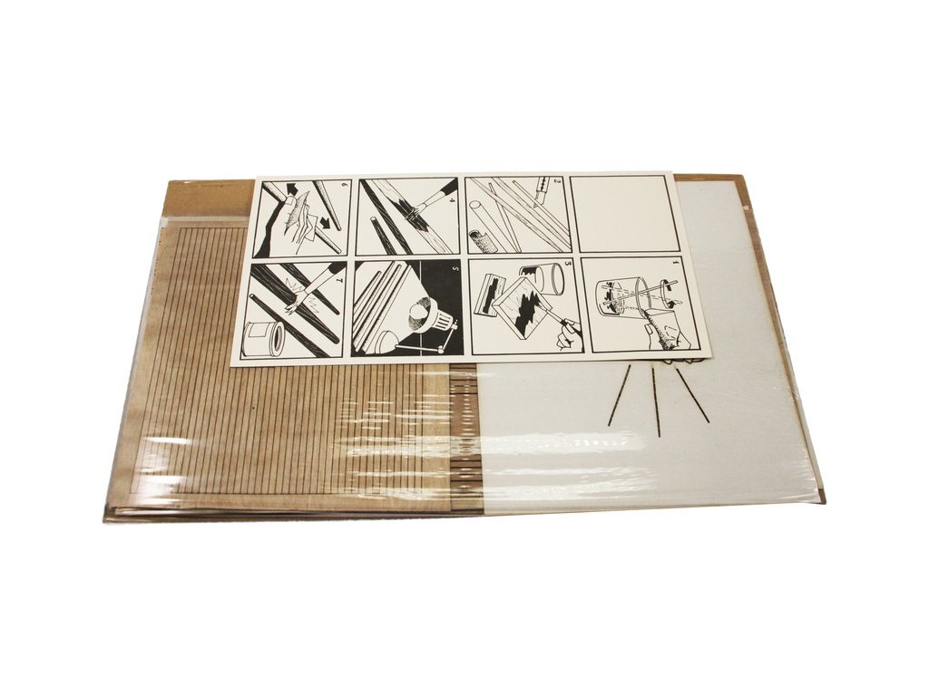 Balení obsahuje sadu překližkových dílů, dřevěných lišt o různém průřezu, sadu výkresů a vícejazyčný manuál.
