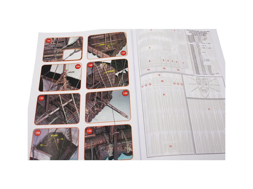 Set obsahuje kompletní sadu výkresové dokumentace modelu v měřítku 1:1 s obrázky jednotlivých detailů. Na výkrese jsou v měřítku nakresleny montážní sestavy, jejich kompletace a to včetně stěžňů a ráhen a způsob vázání lanoví. Vícejazyčný postup stavby rámcově upravuje logické sestavení jednotlivých komponentů.