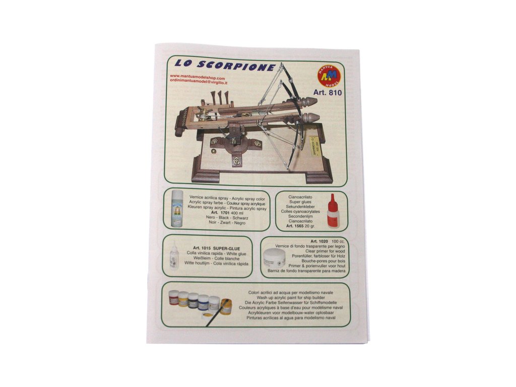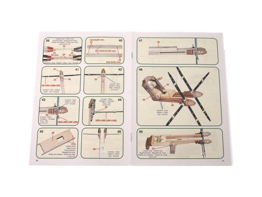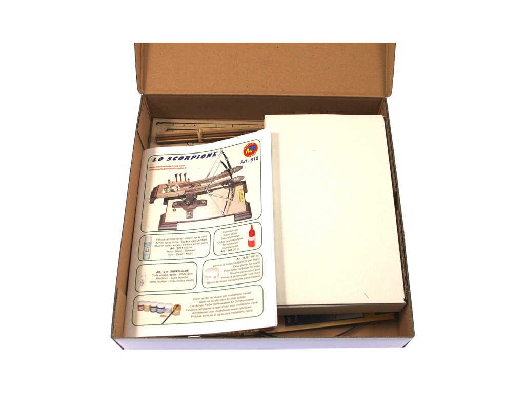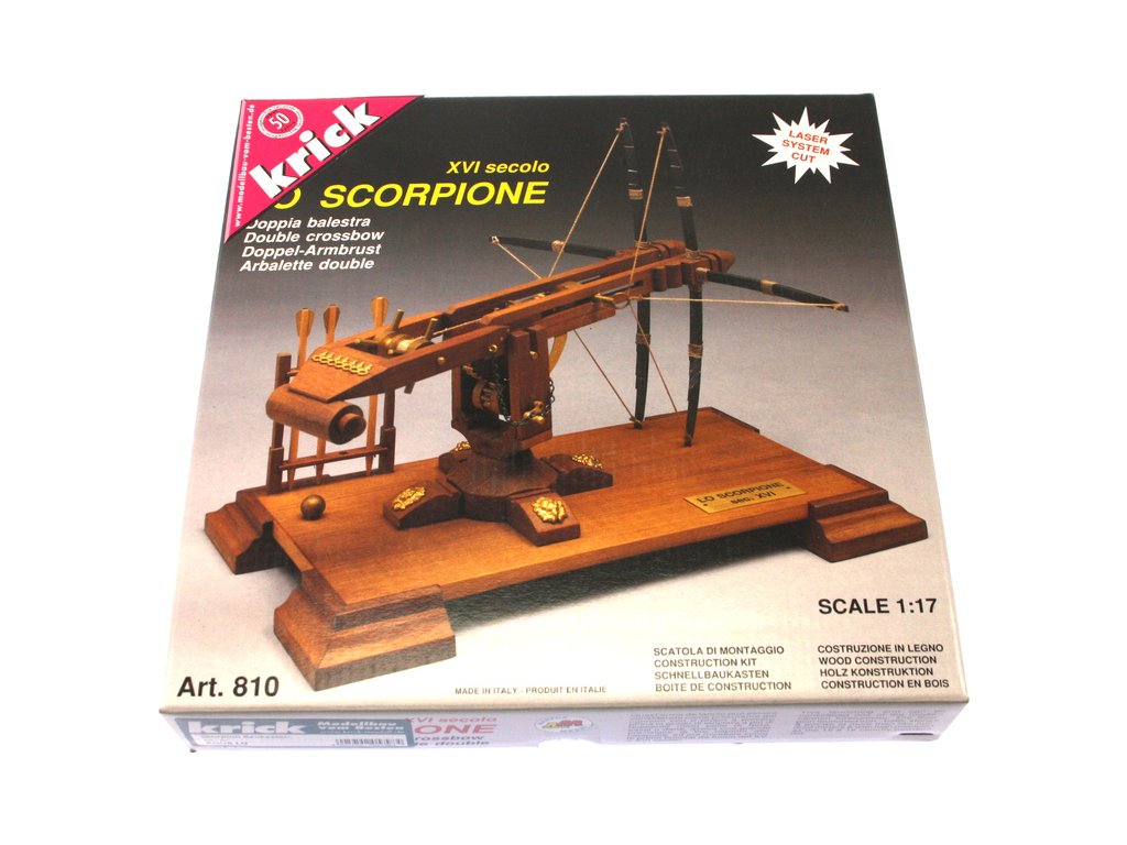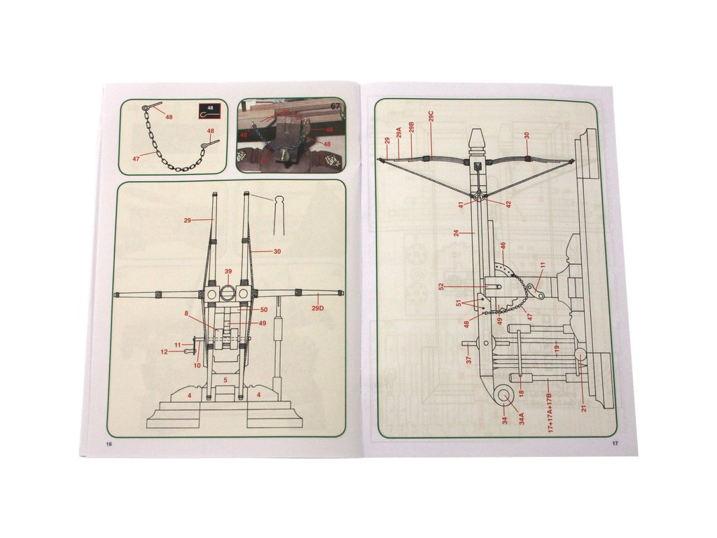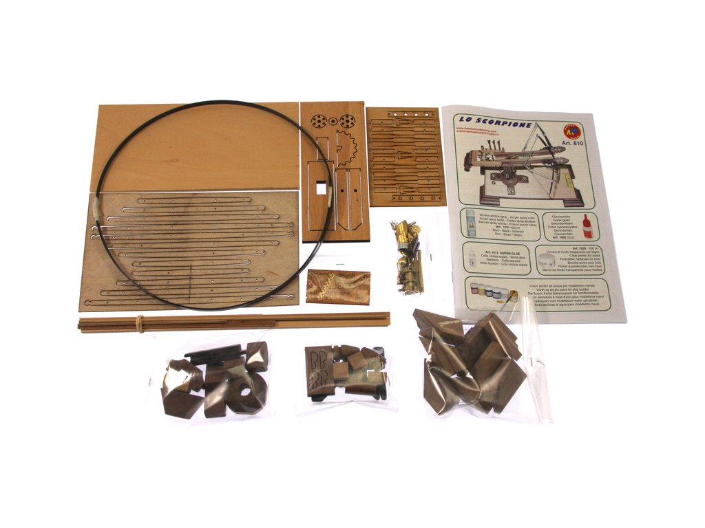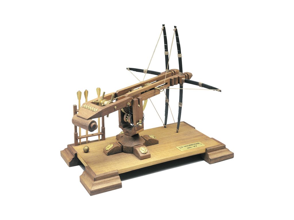 Stavebnice modelu Římského katapultu v měřítku 1:17. Model je maketou vrhací zbraně v podobě dvojité kuše z 15. a 16. století. Tuto kuši s dostřelem přes 200 metrů, lze považovat za předchůdce palných zbraní. Konstrukce se skládá z předem nařezaných dřevěných dílů a kovových litých ozdob.