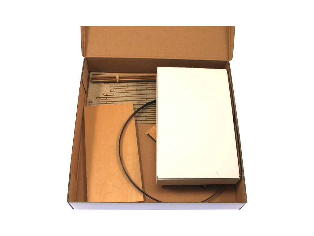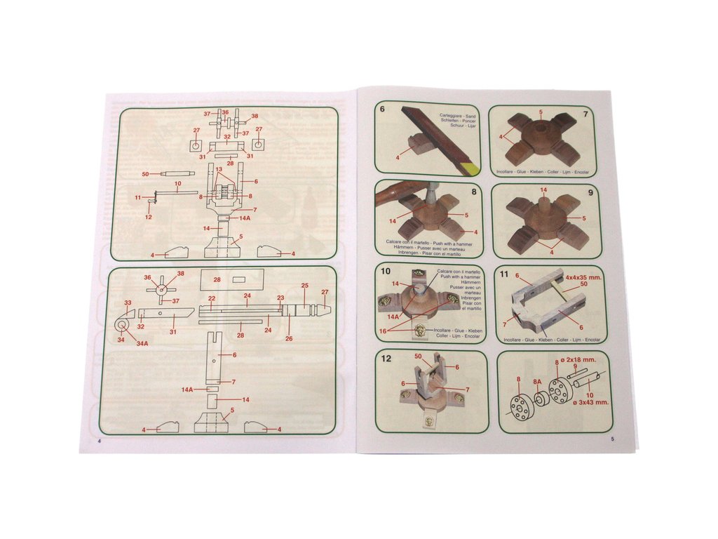 Balení obsahuje laserem vyřezávané dřevěné díly, kovové odlitky, obrázkový návod ke stavbě.