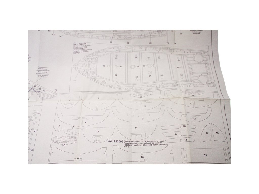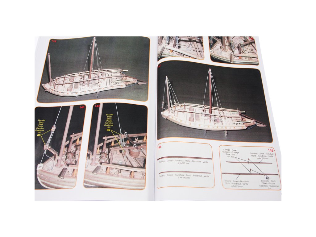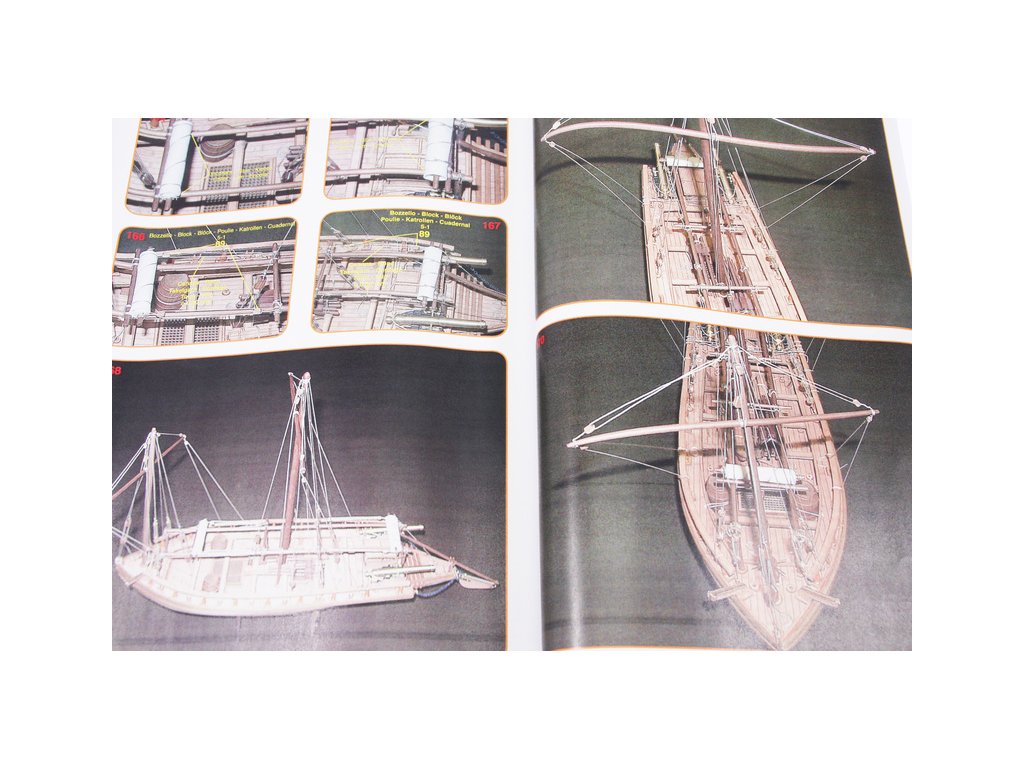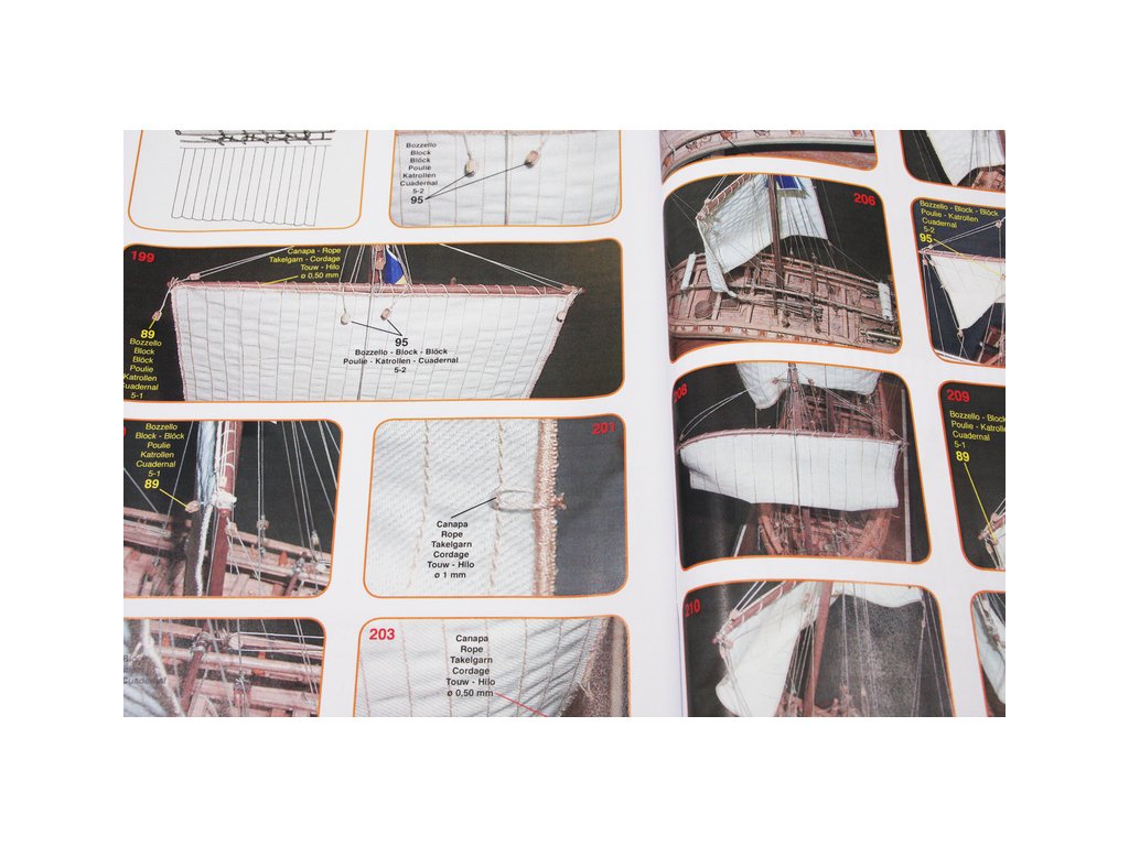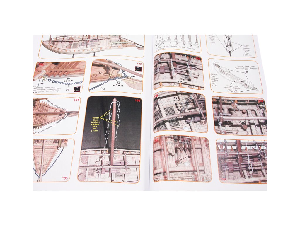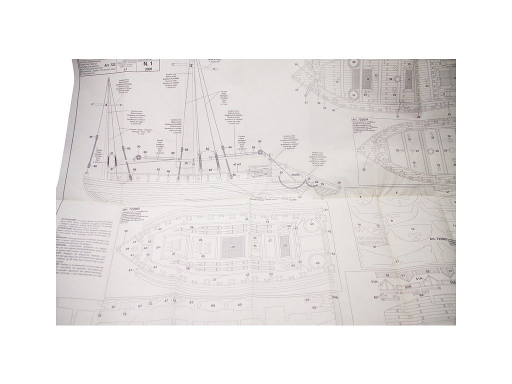 Set obsahuje kompletní sadu výkresové dokumentace modelu v měřítku 1:1 s obrázky jednotlivých detailů. Na výkrese jsou v měřítku nakresleny montážní sestavy, jejich kompletace a to včetně stěžňů a ráhen a způsob vázání lanoví. Vícejazyčný postup stavby rámcově upravuje logické sestavení jednotlivých komponentů.