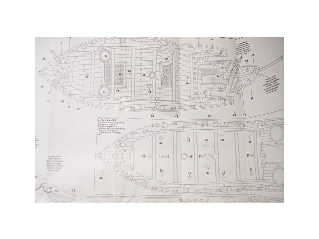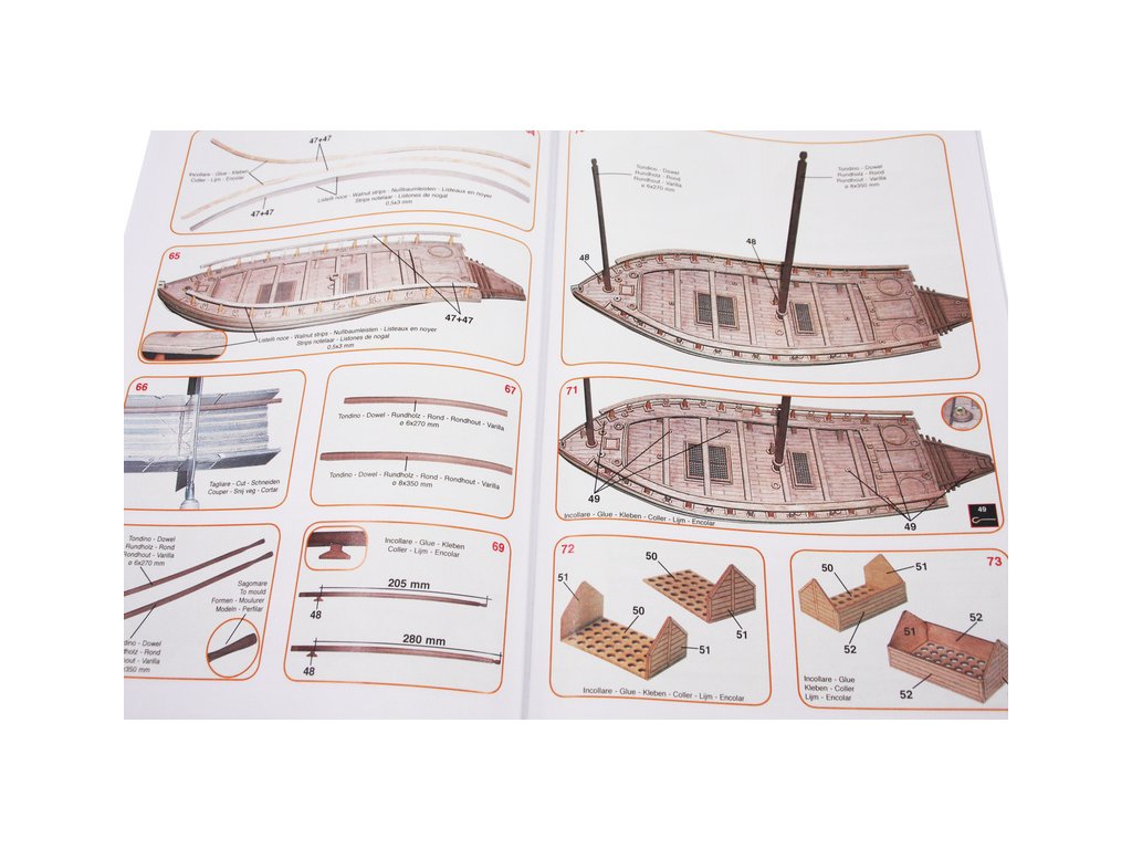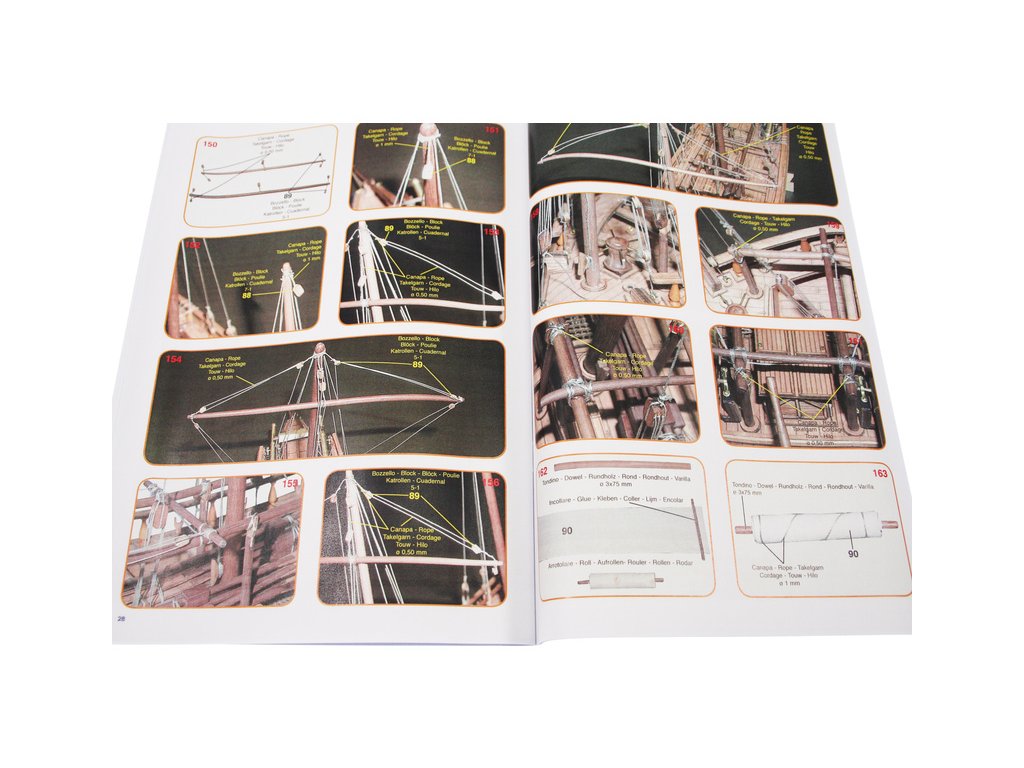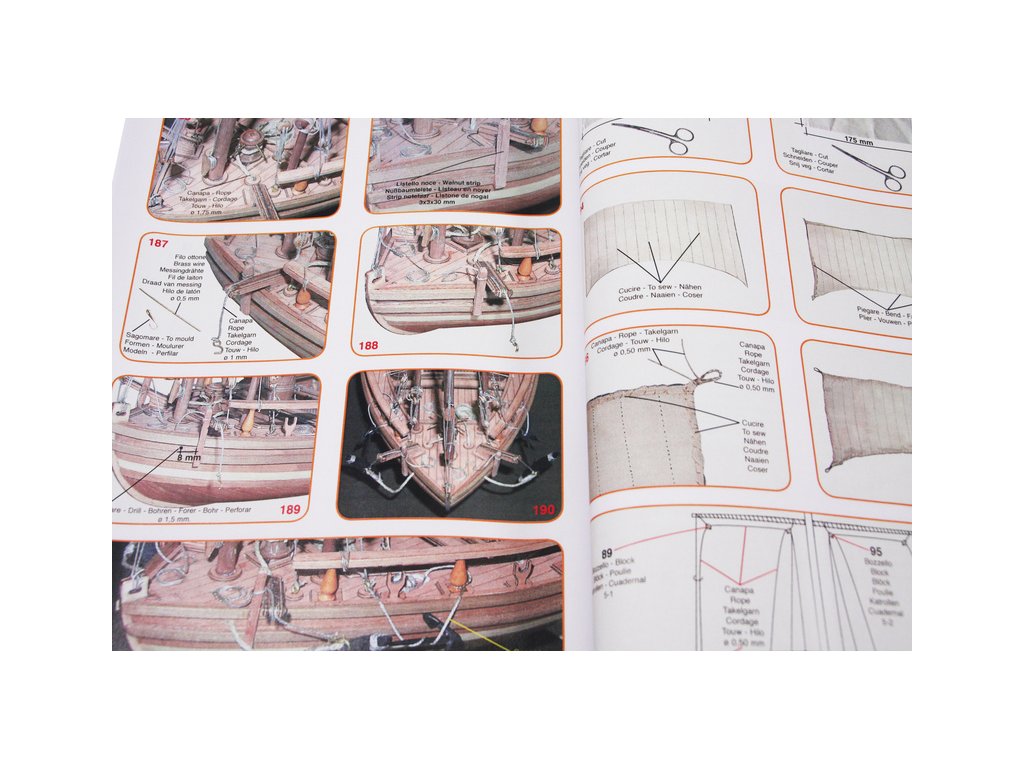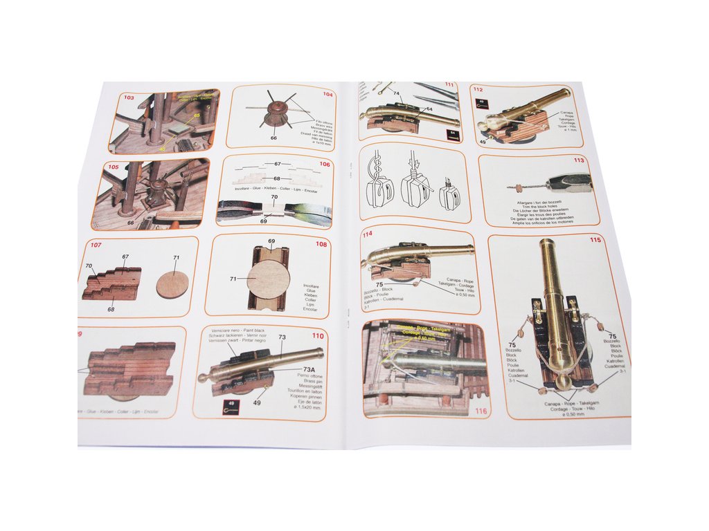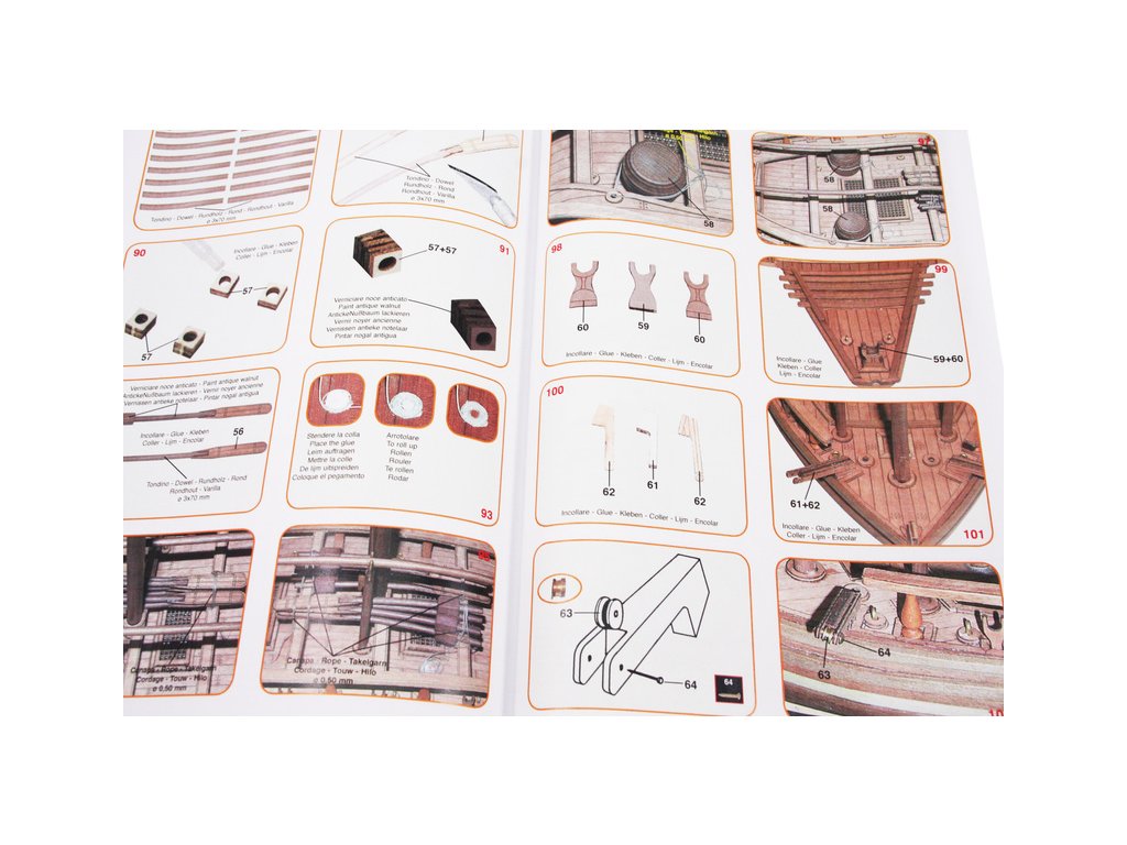 Set obsahuje kompletní sadu výkresové dokumentace modelu v měřítku 1:1 s obrázky jednotlivých detailů. Na výkrese jsou v měřítku nakresleny montážní sestavy, jejich kompletace a to včetně stěžňů a ráhen a způsob vázání lanoví. Vícejazyčný postup stavby rámcově upravuje logické sestavení jednotlivých komponentů.