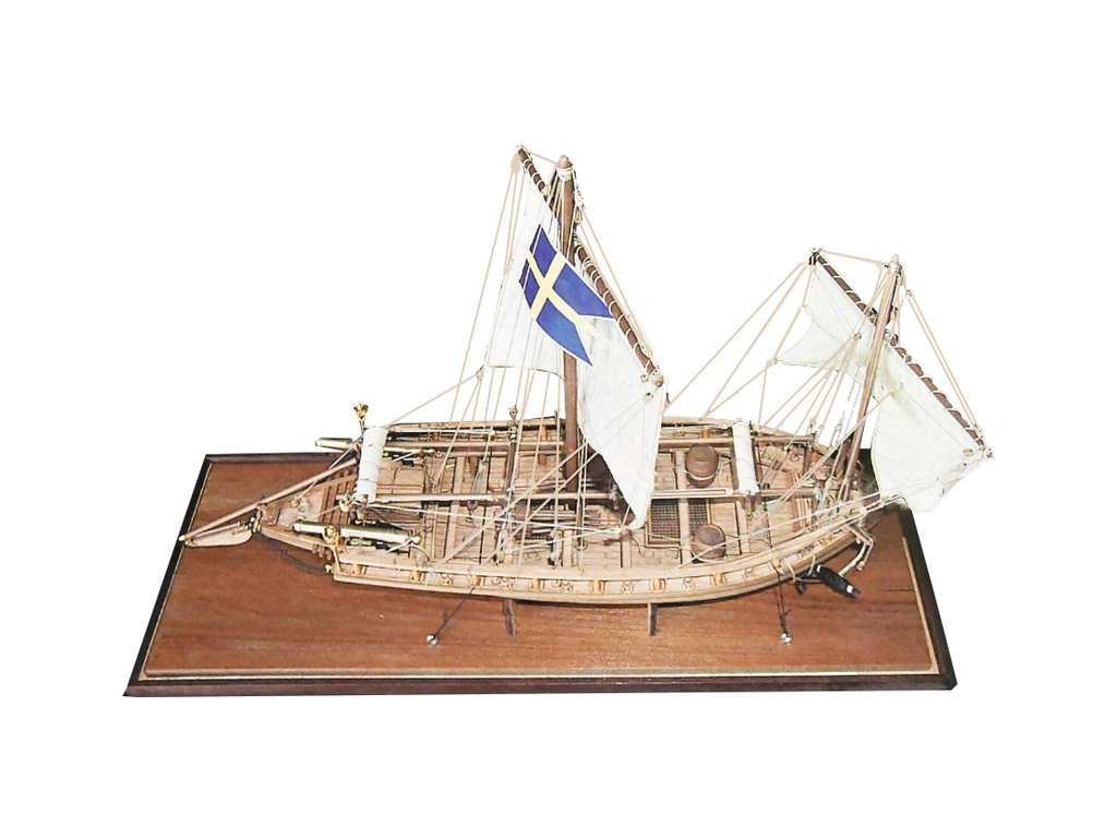 Pěkný model malého ozbrojeného švédského dělového člunu s plochým trupem a dvěma těžkými děly směřujícími dozadu, pochází z doby kolem roku 1775. Díly s vysokými detaily jsou zpracovány pomocí technologie laserového gravírování a představují vysokou úroveň detailů a přesnosti. Sada obsahuje přehledové plány s obecnými detaily a také plně ilustrovaný manuál s více než 200 fotografiemi fází stavby, které ukazují stavbu modelu krok za krokem. Model je stavěn klasickou přepážkovou konstrukcí. Dřevěné kůly a nosníky, mosazné a ořechové doplňky jsou doplněny leptanými mosaznými detaily. Součástí stavebnice je také kroucený motouz a plátno plachet.