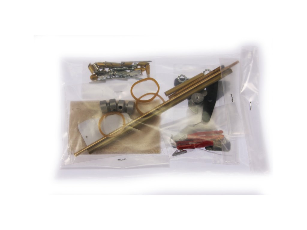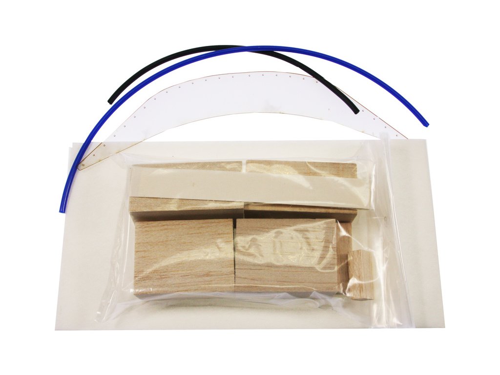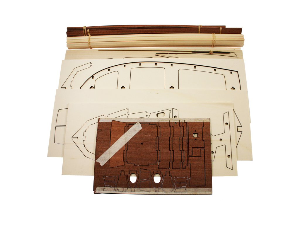 Balení obsahuje sadu překližkových dílů, sadu dřevěných lišt o různém průřezu, blistr s drobnými díly, sadu výkresů a vícejazyčný manuál.