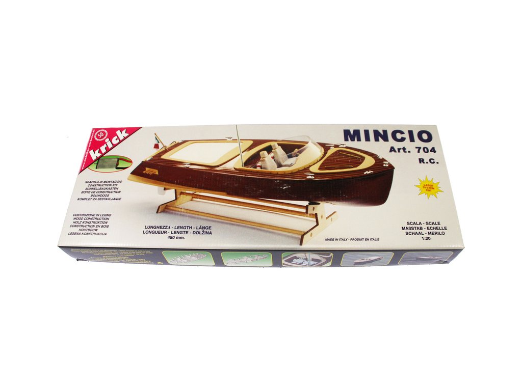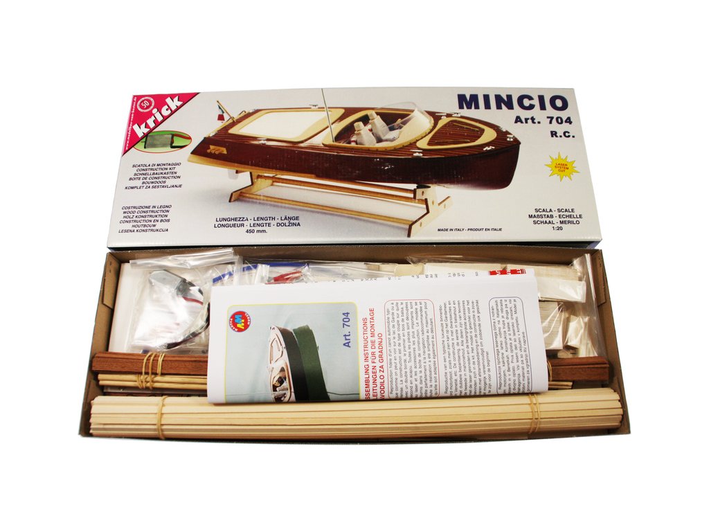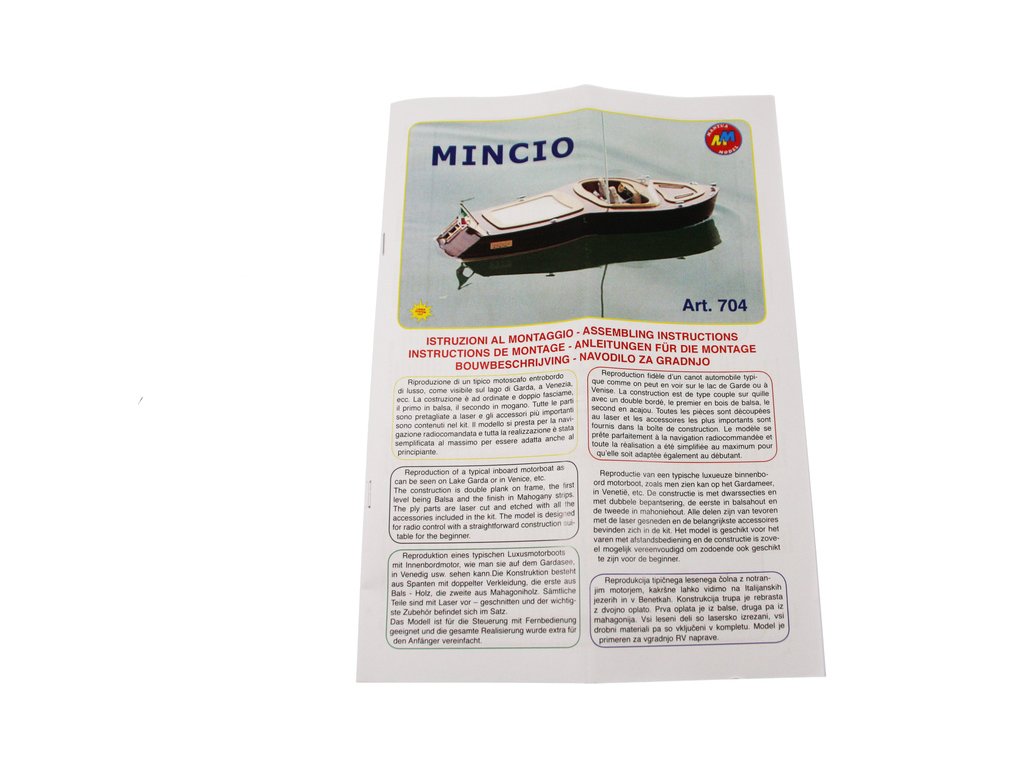 Stavebnice neplovoucího modelu lodi Mantua Model Mincio v měřítku 1:20 a délce 450mm pro začínající i pokročilé modeláře. Typický luxusní motorový člun. Skutečné lodi jsou k vidění na jezeře Garda nebo v Benátkách. Tyto elegantní dřevěné lodě vyzařují velmi zvláštní fascinaci. Abychom získali levný a ne příliš velký model, bylo vybráno běžné měřítko 1:20. Stavebnice obsahuje dřevěné díly vyřezané laserem, drobné díly pro dokončení modelu, stavební plány a návod s výkresy řezů. Součástí je také stojánek lodi.