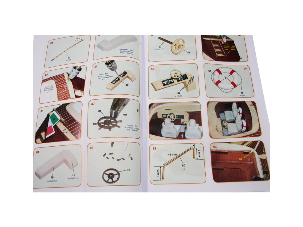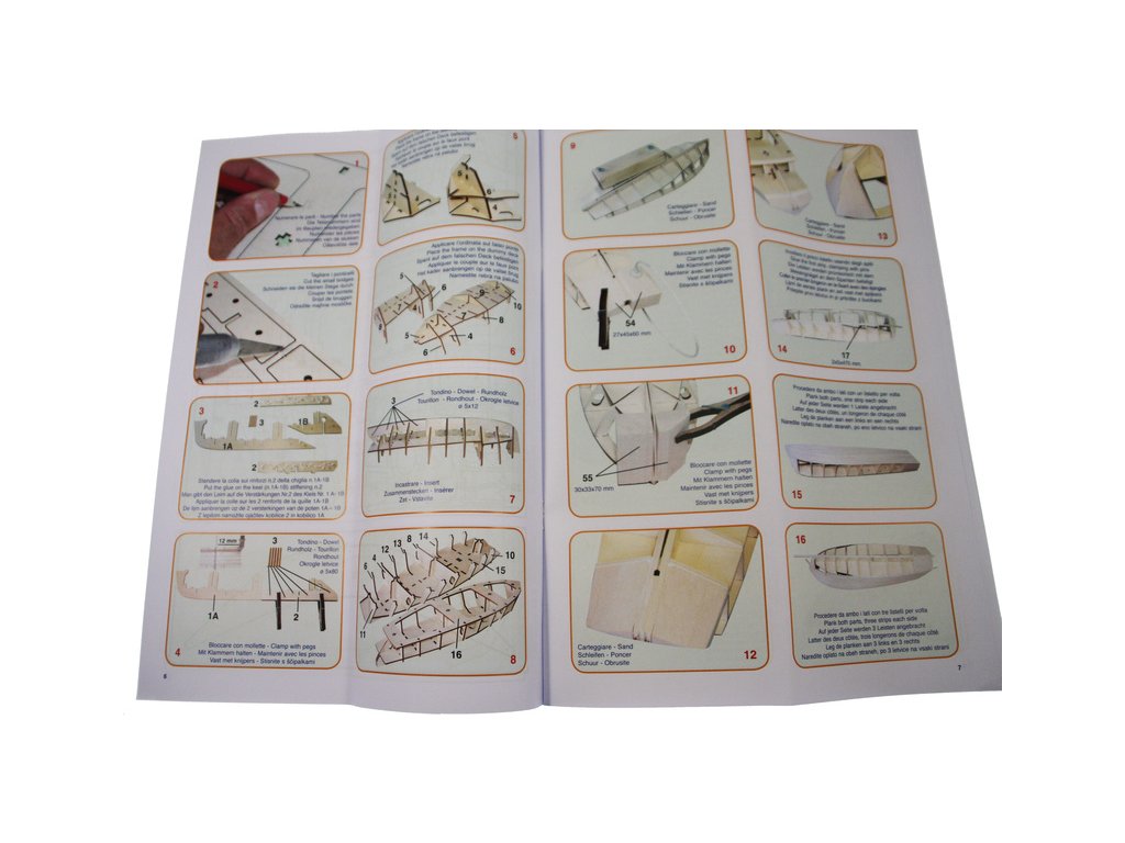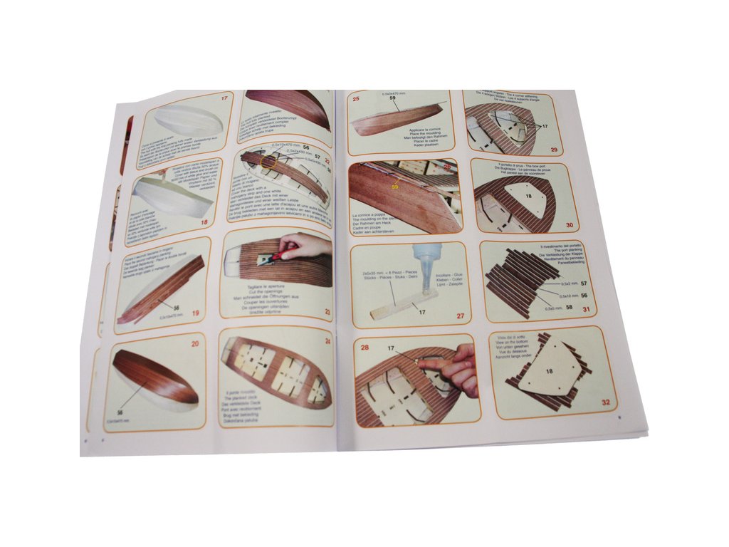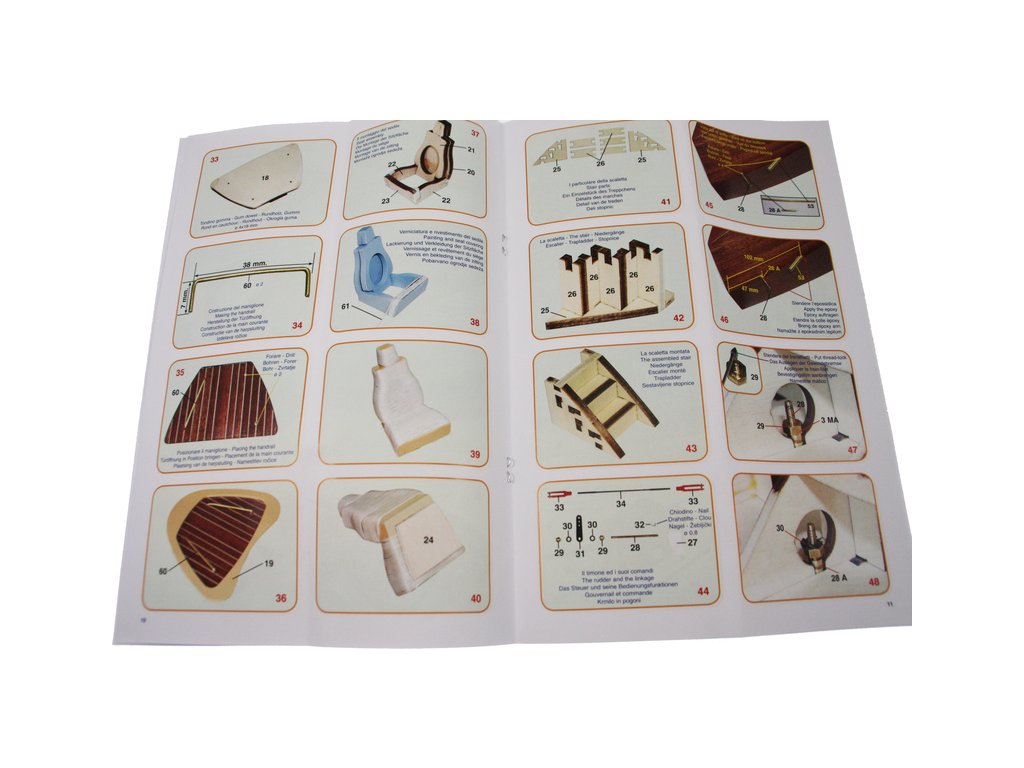 Set obsahuje kompletní sadu výkresové dokumentace modelu v měřítku 1:1 s obrázky jednotlivých detailů. Na výkrese jsou v měřítku nakresleny montážní sestavy, jejich kompletace a to včetně stěžňů a ráhen a způsob vázání lanoví. Vícejazyčný postup stavby rámcově upravuje logické sestavení jednotlivých komponentů.