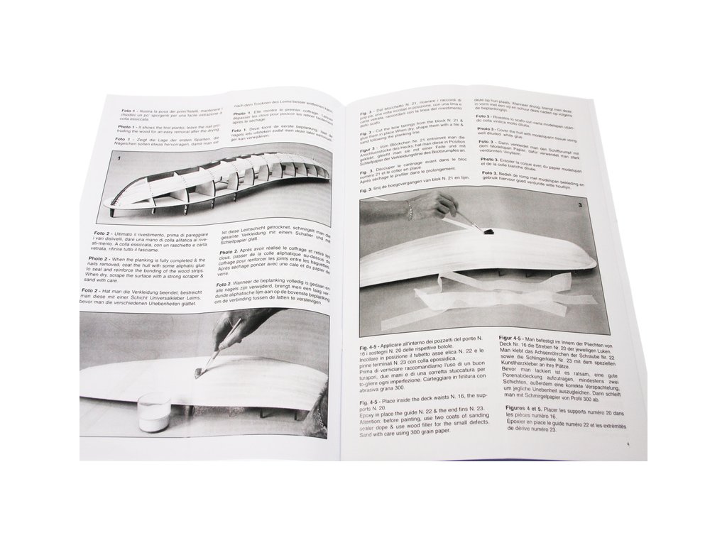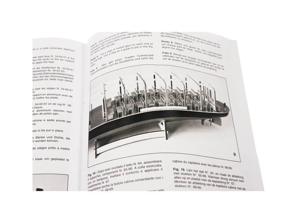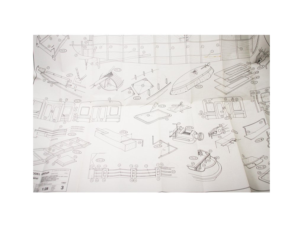 Set obsahuje kompletní sadu výkresové dokumentace modelu v měřítku 1:1 s obrázky jednotlivých detailů. Na výkrese jsou v měřítku nakresleny montážní sestavy, jejich kompletace a to včetně stěžňů a ráhen a způsob vázání lanoví. Vícejazyčný postup stavby rámcově upravuje logické sestavení jednotlivých komponentů.