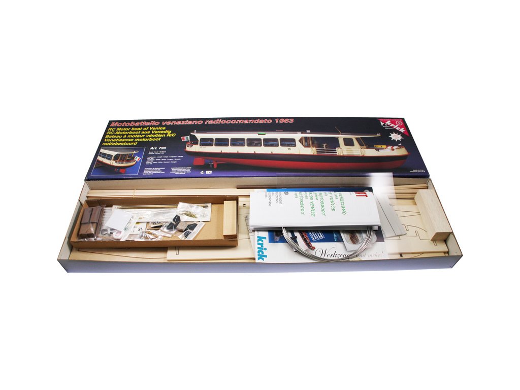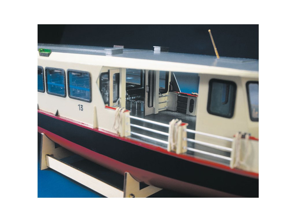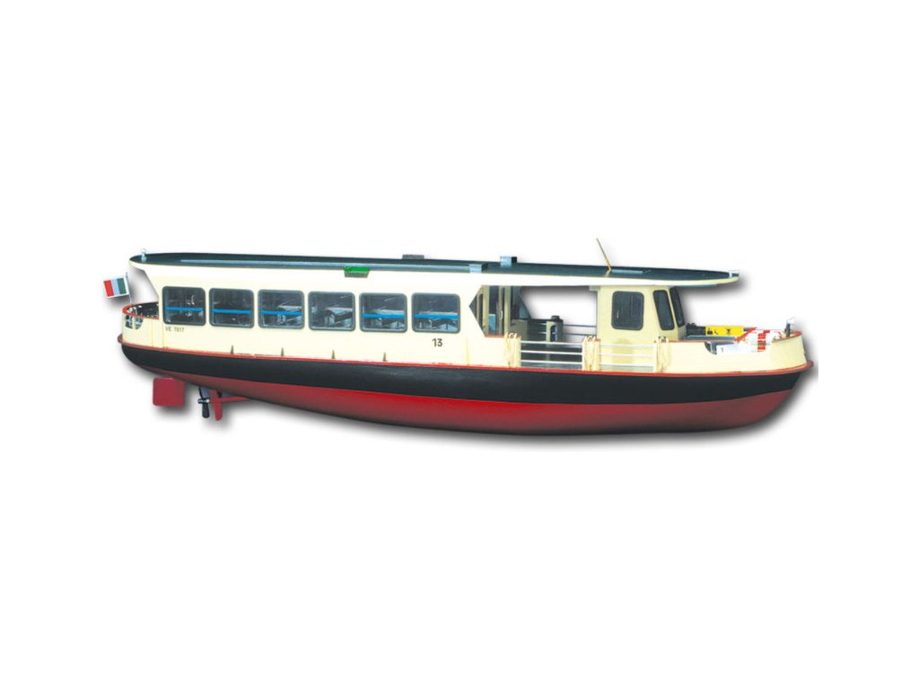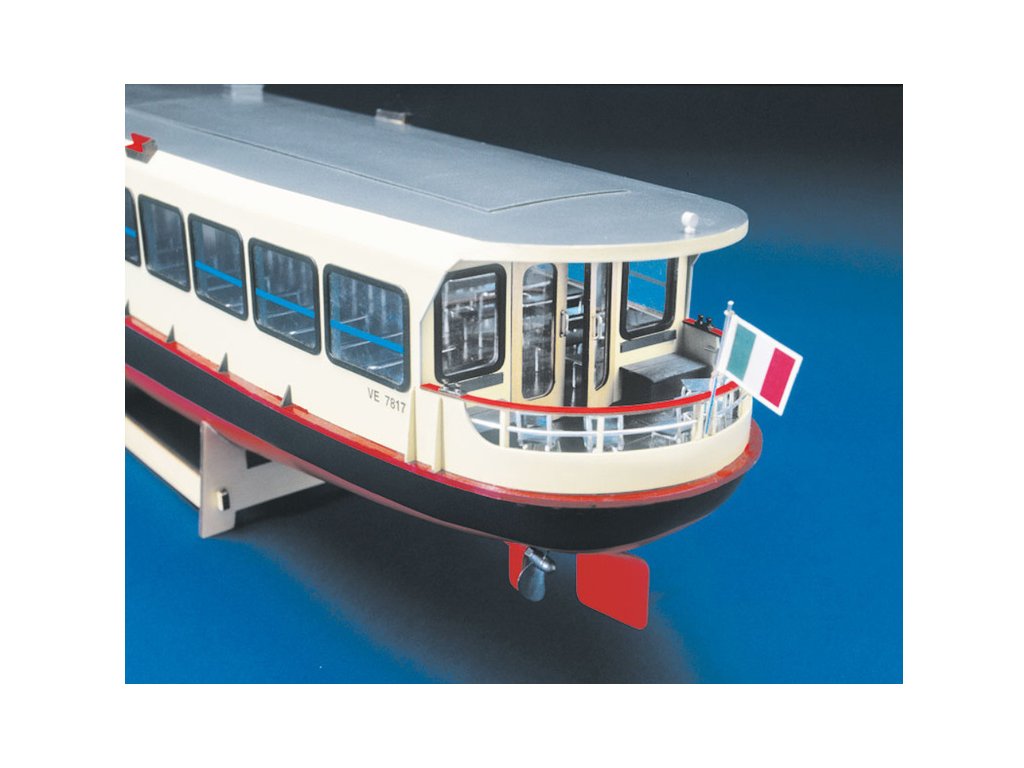 Každý, kdo navštívil město Benátky, tyto lodní omnibusy velmi dobře zná a možná už na nich i jel. Tito „Motobattellos“ neustále jezdí v hlavních kanálech a zajišťují rychlou přepravu. Model je relativně velký, v měřítku 1:28 má délku 830mm, takže dálkové ovládání a pohon lze do trupu lodi bez problémů umístit. Trup je tvořen kýlem, žebry a obšívkou a palubou. Všechny dřevěné části jsou přesně vyřezány laserem. Hřídel, záďová trubka a kormidelní systém jsou vyrobeny z funkčních mosazných součástí. Kování je vyrobeno převážně z litého kovu. Součástí je také obtiskový arch s ralistickými popisy paluby. Plán stavby a montážní návod rovněž poskytují informace o zástavbě do funkčního modelu.