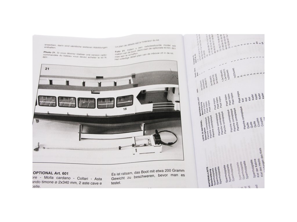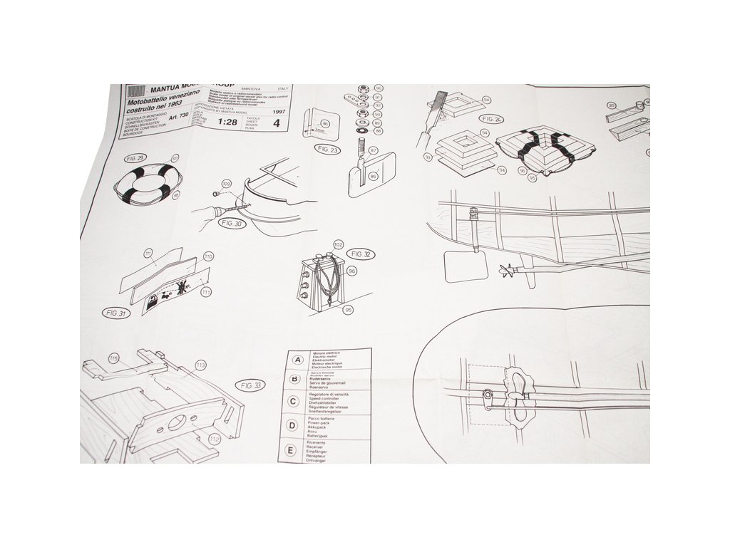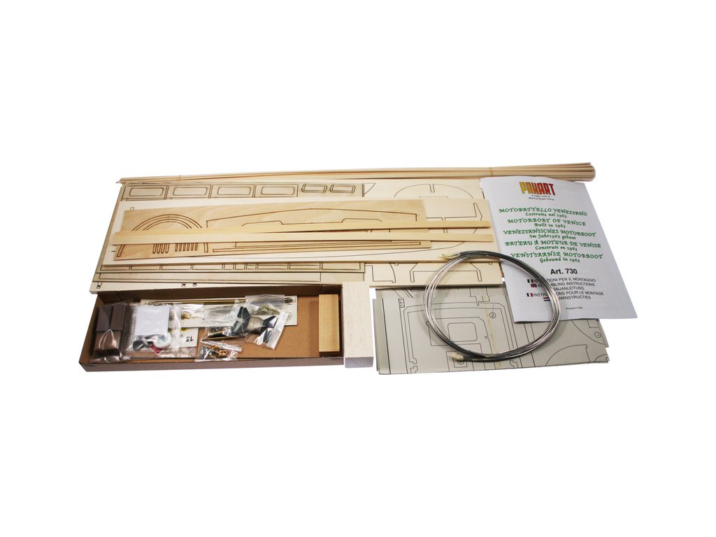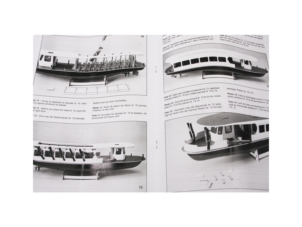 Každý, kdo navštívil město Benátky, tyto lodní omnibusy velmi dobře zná a možná už na nich i jel. Tito „Motobattellos“ neustále jezdí v hlavních kanálech a zajišťují rychlou přepravu. Model je relativně velký, v měřítku 1:28 má délku 830mm, takže dálkové ovládání a pohon lze do trupu lodi bez problémů umístit. Trup je tvořen kýlem, žebry a obšívkou a palubou. Všechny dřevěné části jsou přesně vyřezány laserem. Hřídel, záďová trubka a kormidelní systém jsou vyrobeny z funkčních mosazných součástí. Kování je vyrobeno převážně z litého kovu. Součástí je také obtiskový arch s ralistickými popisy paluby. Plán stavby a montážní návod rovněž poskytují informace o zástavbě do funkčního modelu.