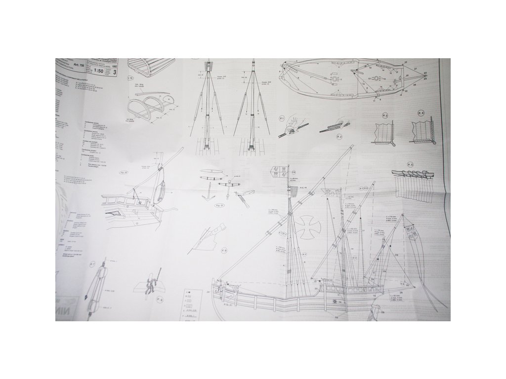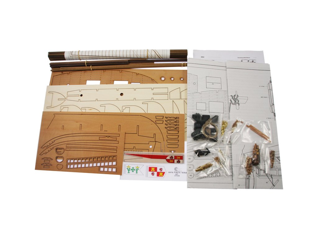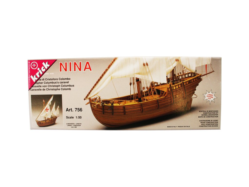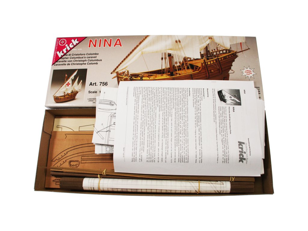 Stavebnice neplovoucího modelu známé plachetnice Mantua Model Nina v měřítku 1:50 a délce 410mm. Spolu s lodí Pinta a Santa Maria tvořila flotilu Kryštofa Kolumba, se kterou v roce 1492 objevil nový svět. Kit obsahuje dřevěné díly, kovové odlitky dekorací a podrobné stavební plány.