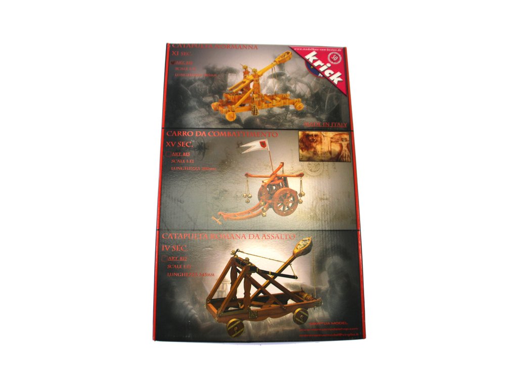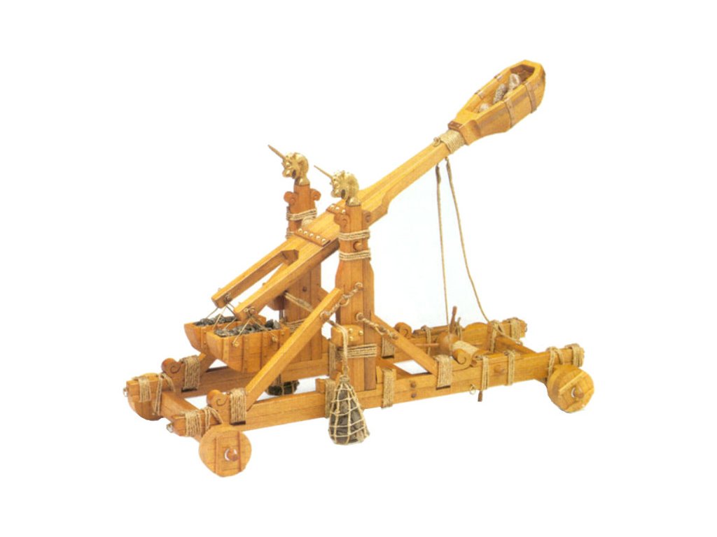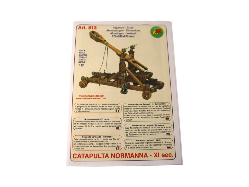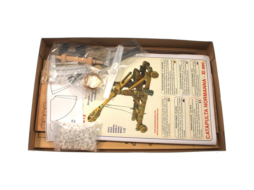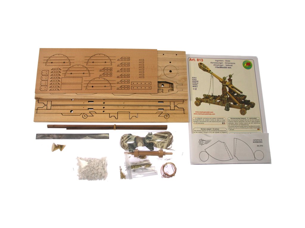 Stavebnice modelu Normanského katapultu v měřítku 1:12. Normanský katapult z 11. století lze považovat za předchůdce moderních minometů. Tento typ katapultu byl hojně využíván až do nástupu děl. Konstrukce se skládá z předem nařezaných dřevěných dílů a kovových litých ozdob.