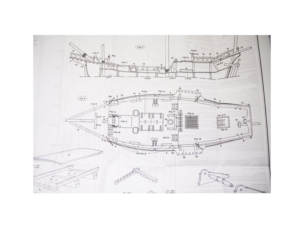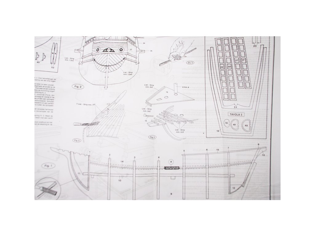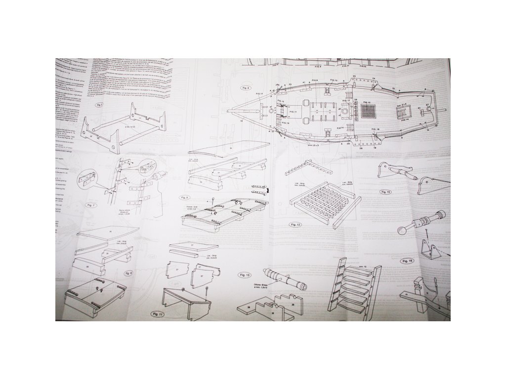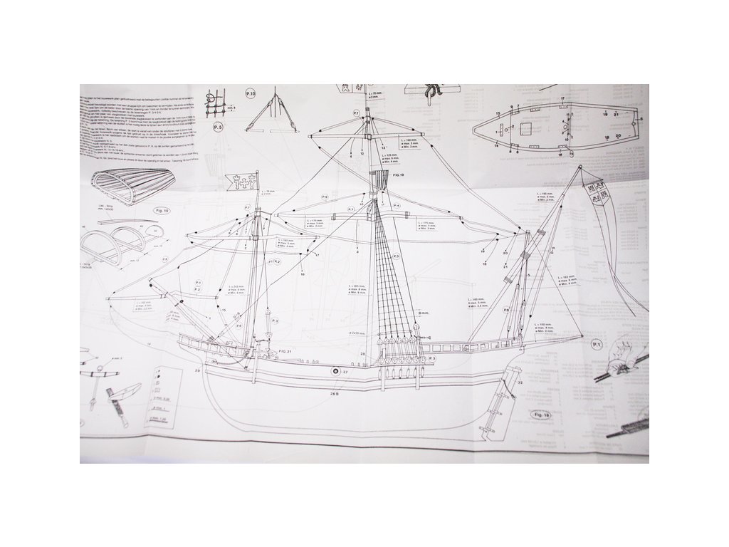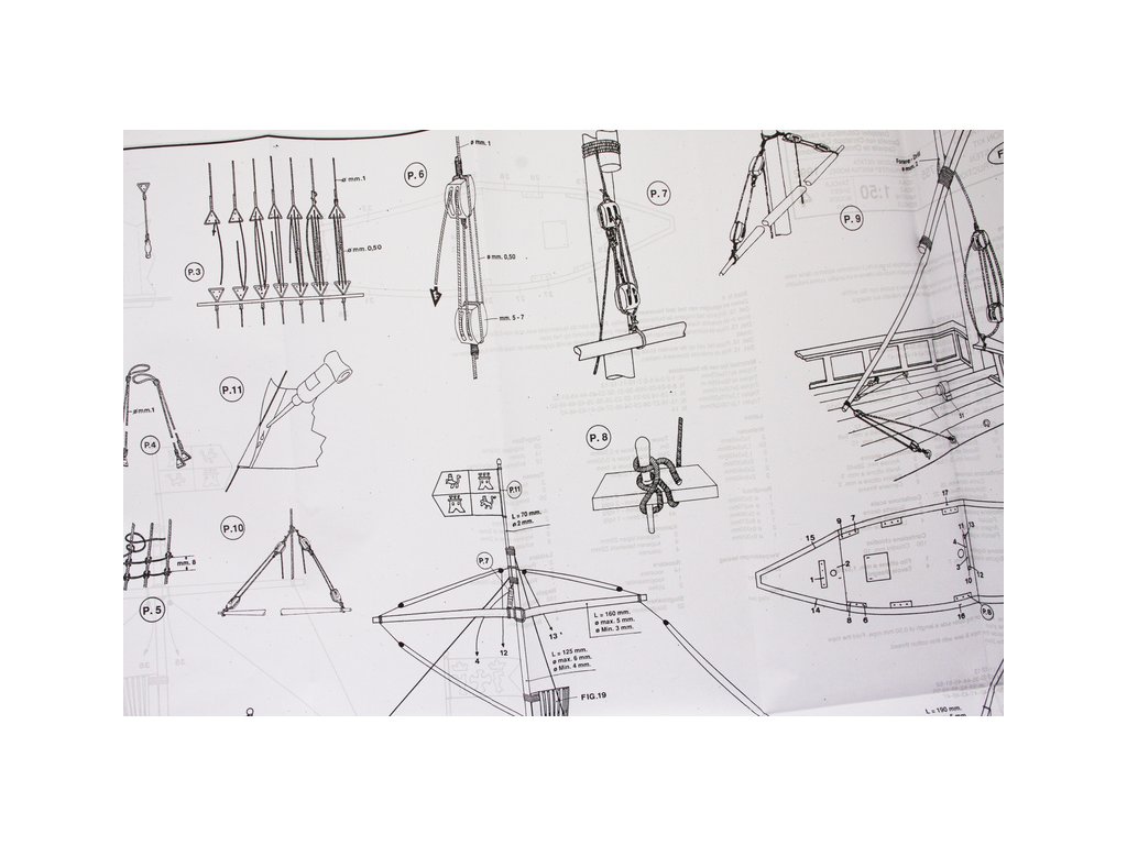 Set obsahuje kompletní sadu výkresové dokumentace modelu v měřítku 1:1 s obrázky jednotlivých detailů. Na výkrese jsou v měřítku nakresleny montážní sestavy, jejich kompletace a to včetně stěžňů a ráhen a způsob vázání lanoví. Vícejazyčný postup stavby rámcově upravuje logické sestavení jednotlivých komponentů.