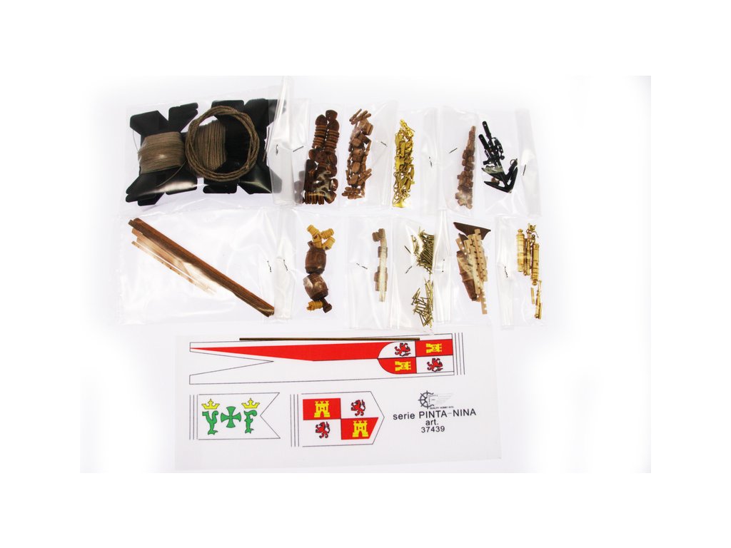 Kolumbus byl přesvědčen, že našel námořní cestu do Indie. Objevením dříve neznámého kontinentu začalo v 16. století nesmírněkruté dobývání Ameriky Španěly. Sada obsahuje všechny dřevěné díly, které jsou vyřezány s milimetrovou přesností pomocí laseru, barevné vlajky a plachty, vzácné dřevěné lišty, tyče a rozsáhlou sadu kování. S pomocí všech potřebných maketových doplňků si můžete vytvořit nádherný model.