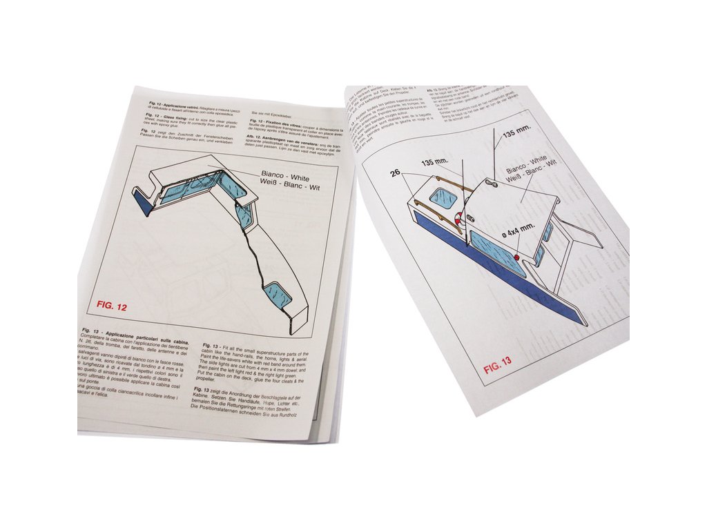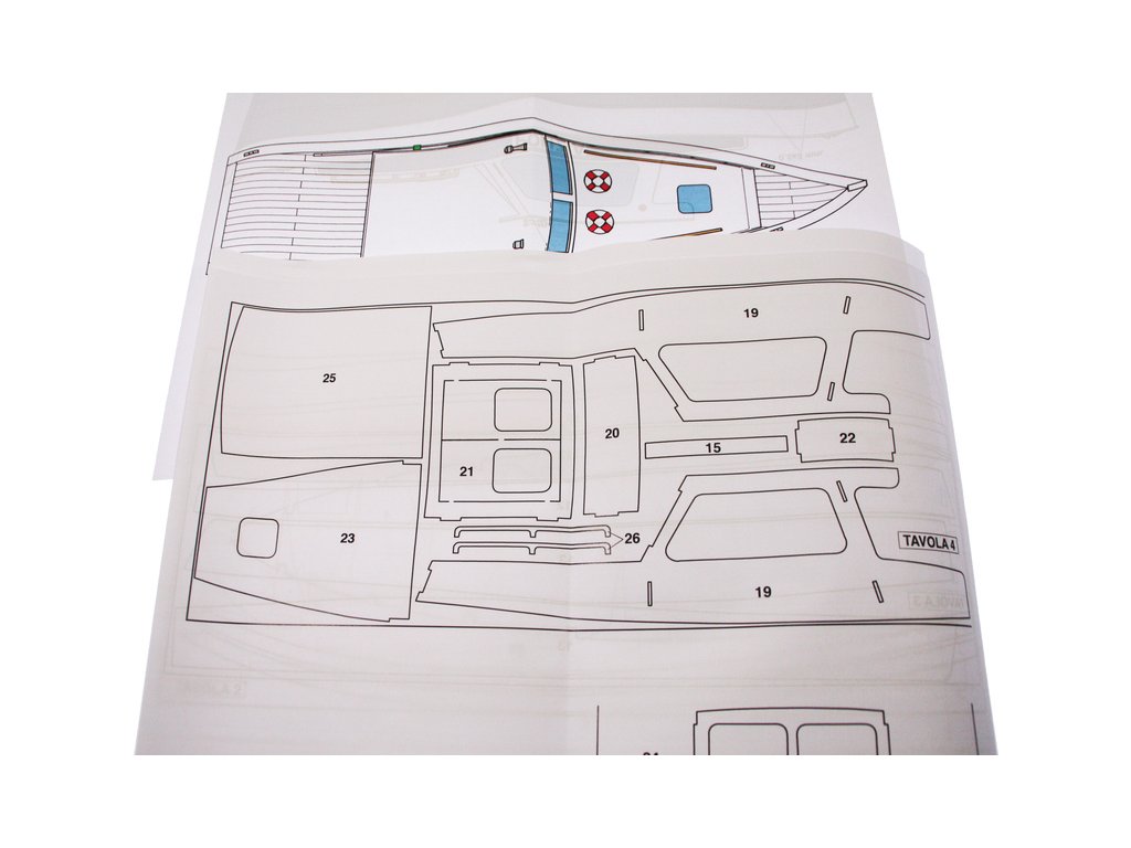 Set obsahuje kompletní sadu výkresové dokumentace modelu v měřítku 1:1 s obrázky jednotlivých detailů. Na výkrese jsou v měřítku nakresleny montážní sestavy, jejich kompletace a to včetně stěžňů a ráhen a způsob vázání lanoví. Vícejazyčný postup stavby rámcově upravuje logické sestavení jednotlivých komponentů.