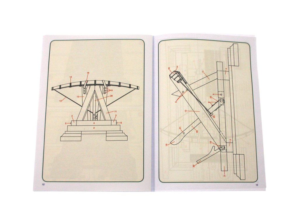 Balení obsahuje laserem vyřezávané dřevěné díly, kovové odlitky, lana, obrázkový návod ke stavbě.