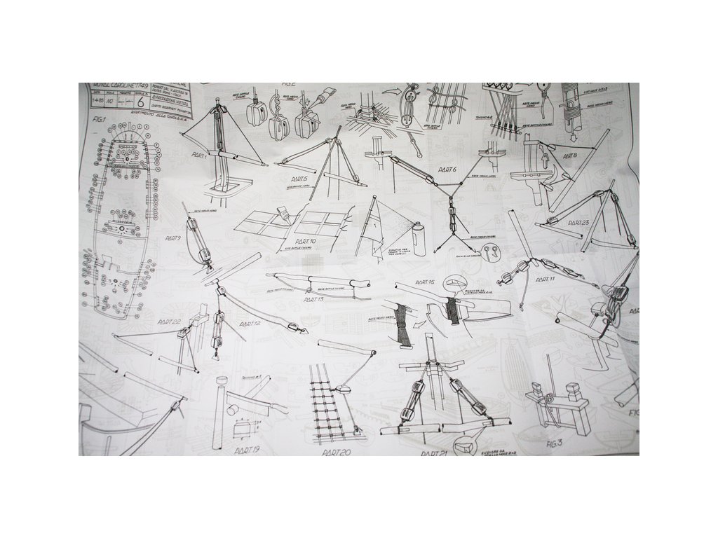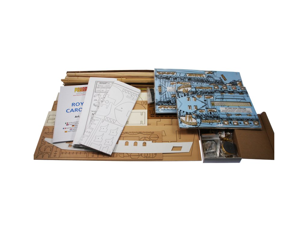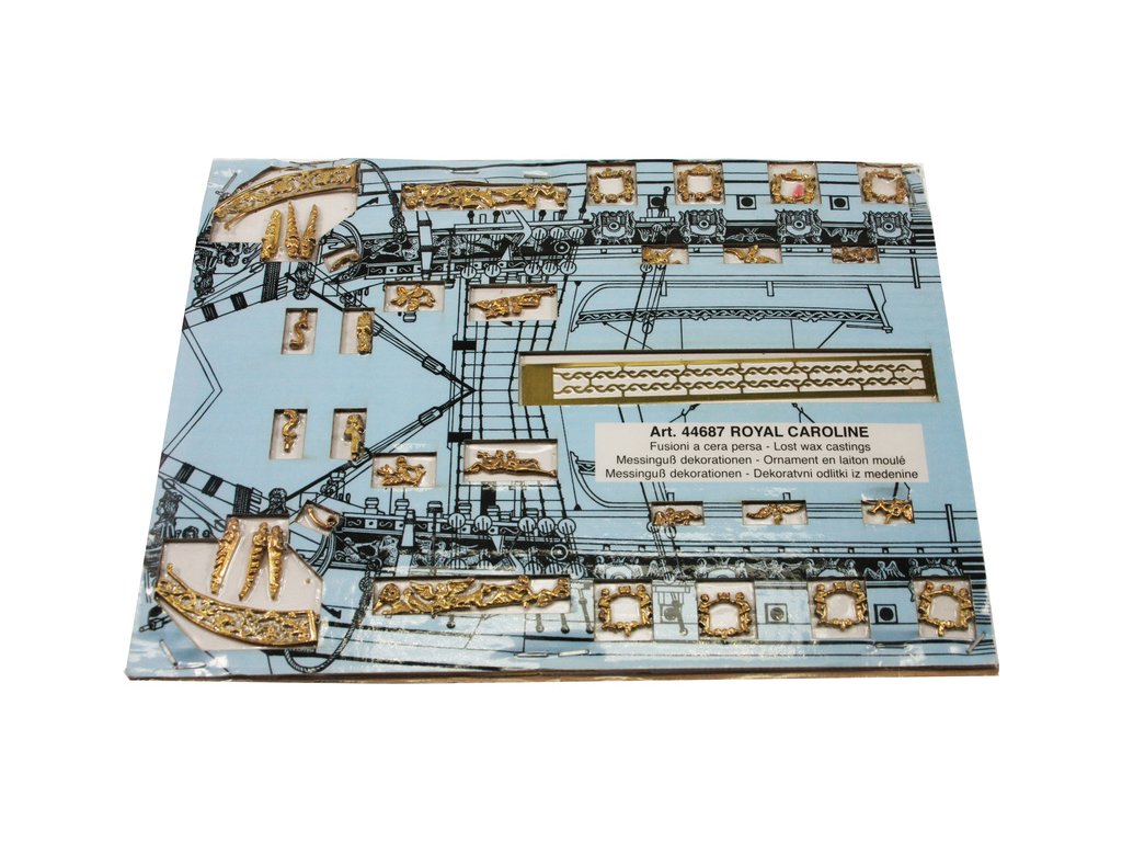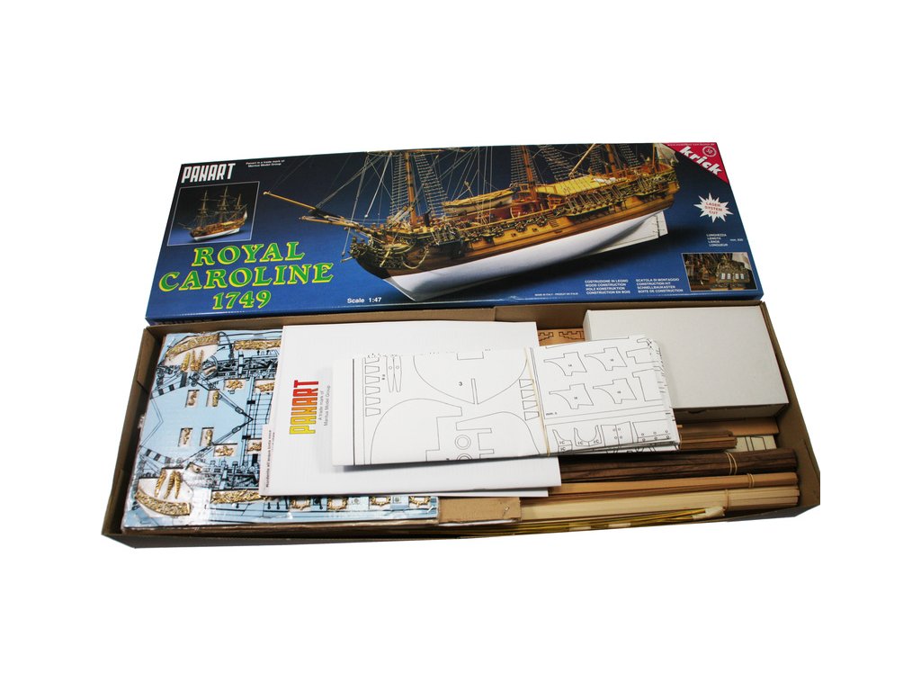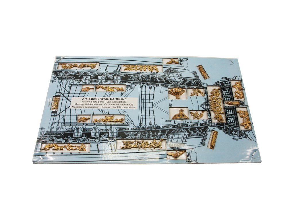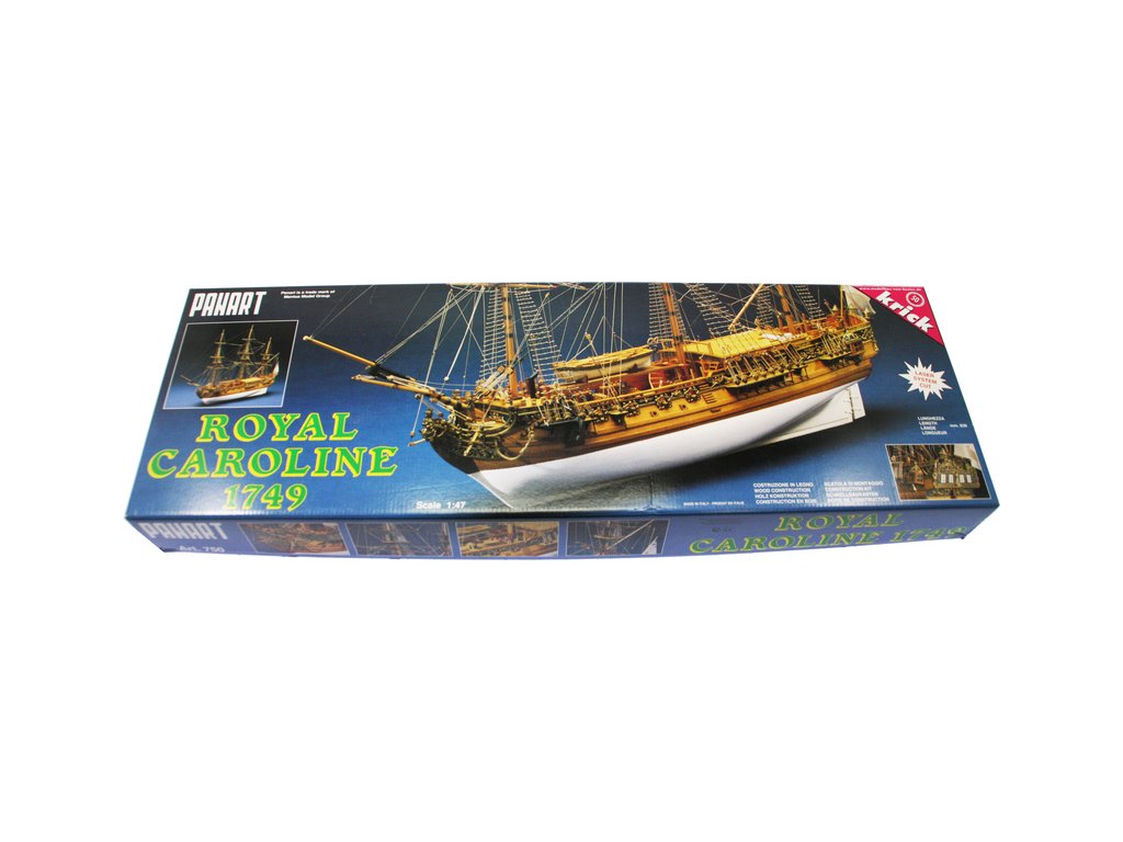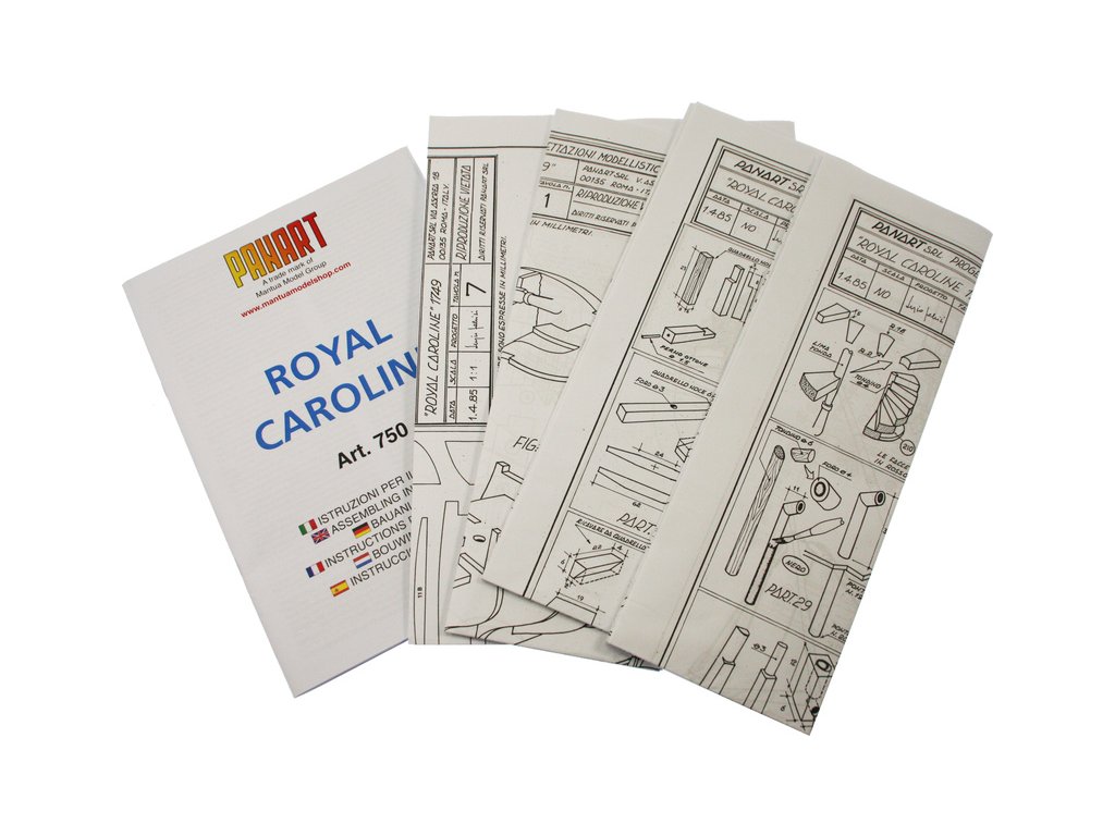 Stavebnice neplovoucího modelu lodi Mantua Model Royal Caroline v měřítku 1:47 a délce 830mm, byla postavena v loděnici Bedford v roce 1749 jako jachta pro anglickou královskou rodinu. Kit obsahuje dřevěné díly, kovové odlitky dekorací a podrobné stavení plány.