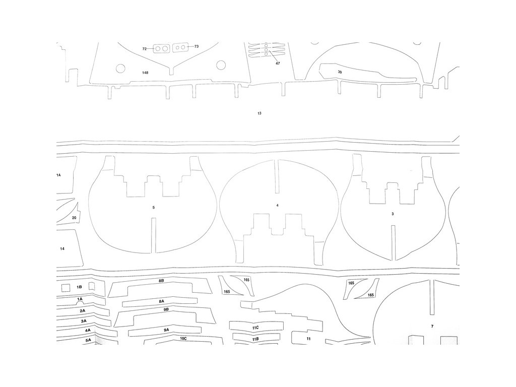 Po otevření víka krabice naleznete dřevěné díly modelu z překližky, lišty, drobné součásti v plastových sáčcích a manuál.