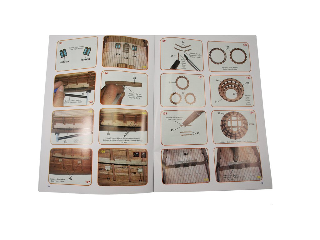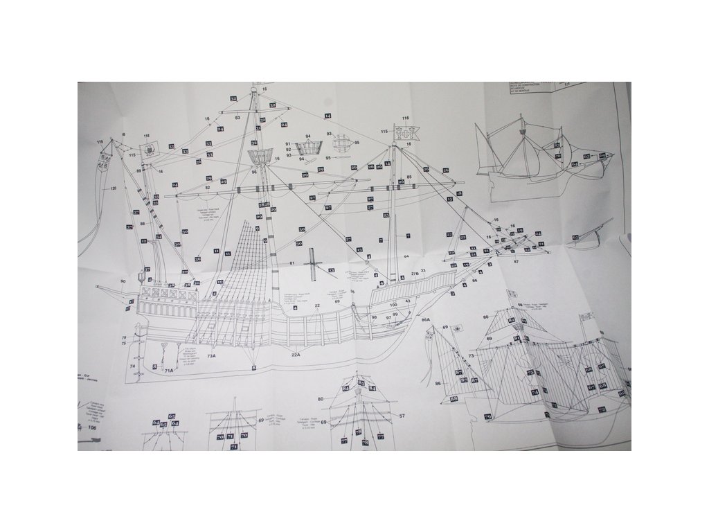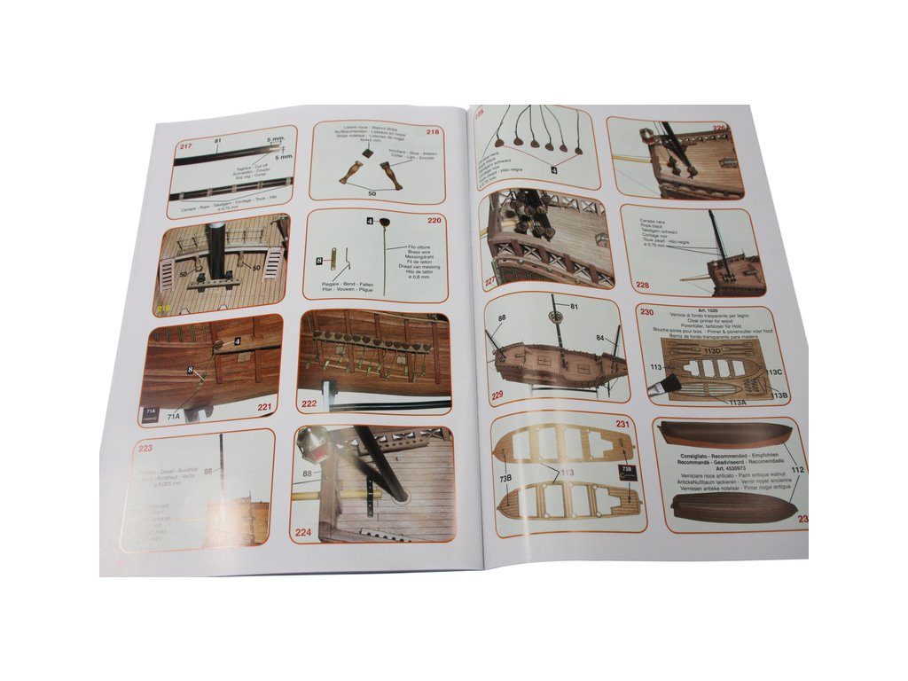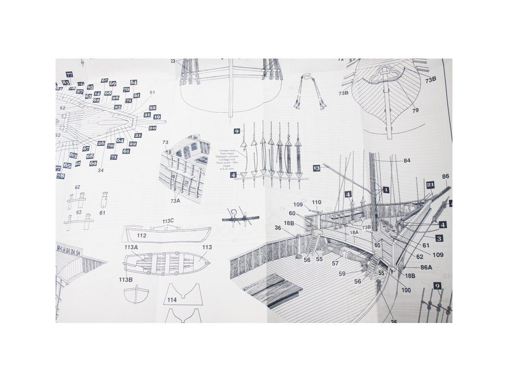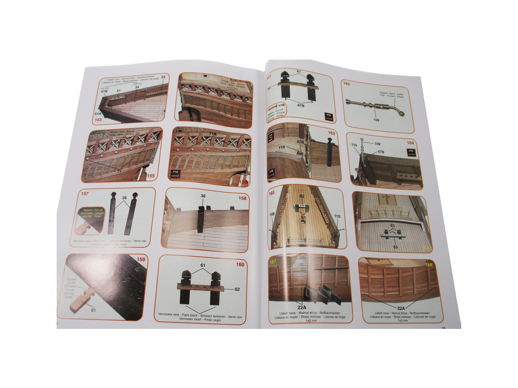 Set obsahuje kompletní sadu výkresové dokumentace modelu v měřítku 1:1 s obrázky jednotlivých detailů. Na výkrese jsou v měřítku nakresleny montážní sestavy, jejich kompletace a to včetně stěžňů a ráhen a způsob vázání lanoví. Vícejazyčný postup stavby rámcově upravuje logické sestavení jednotlivých komponentů.