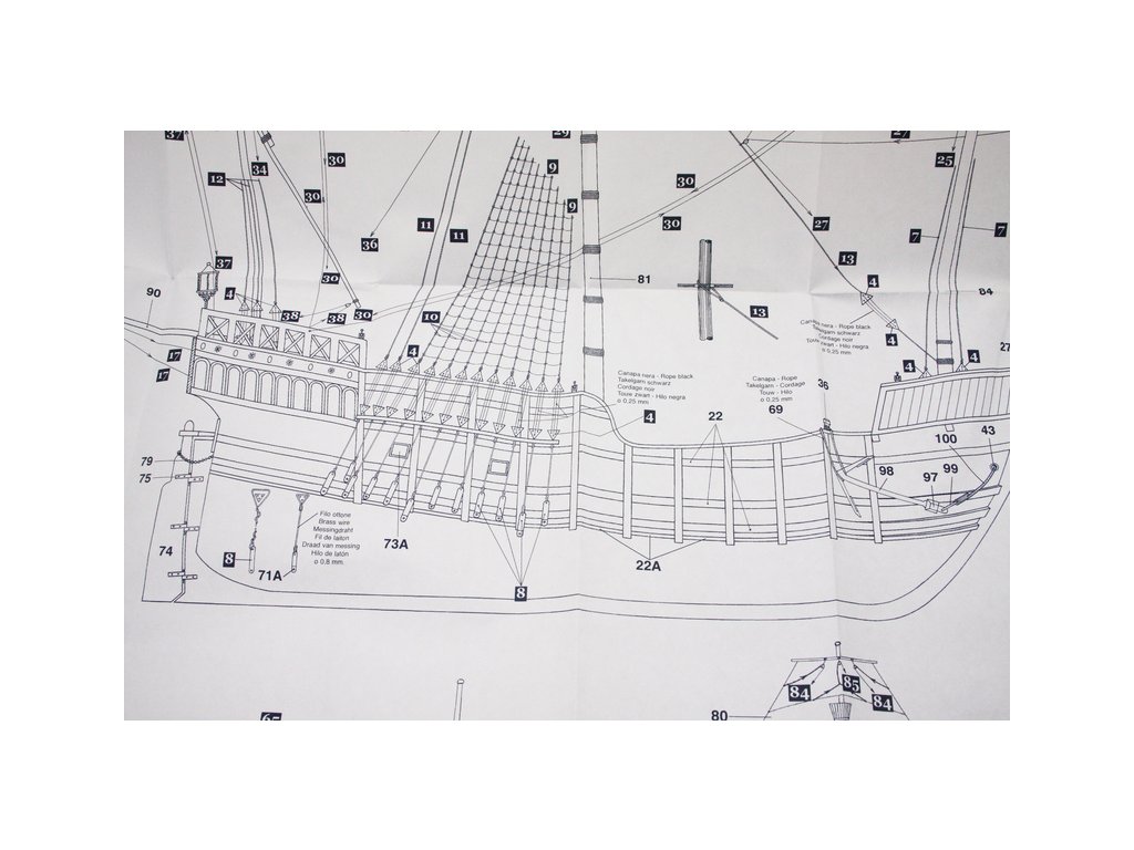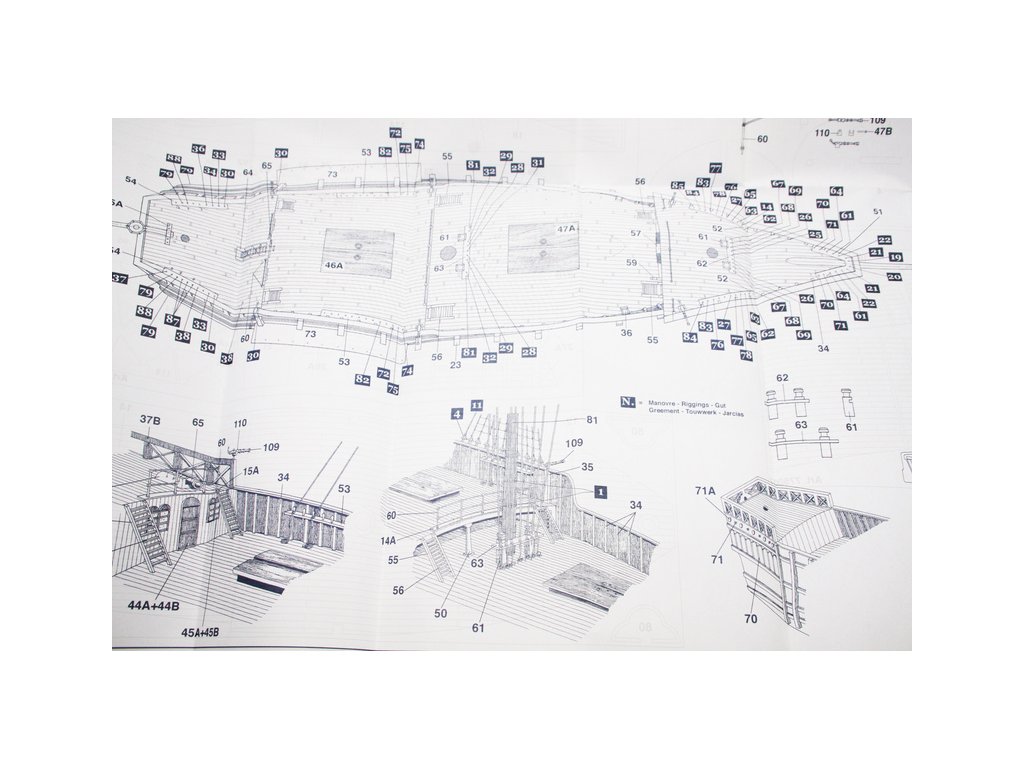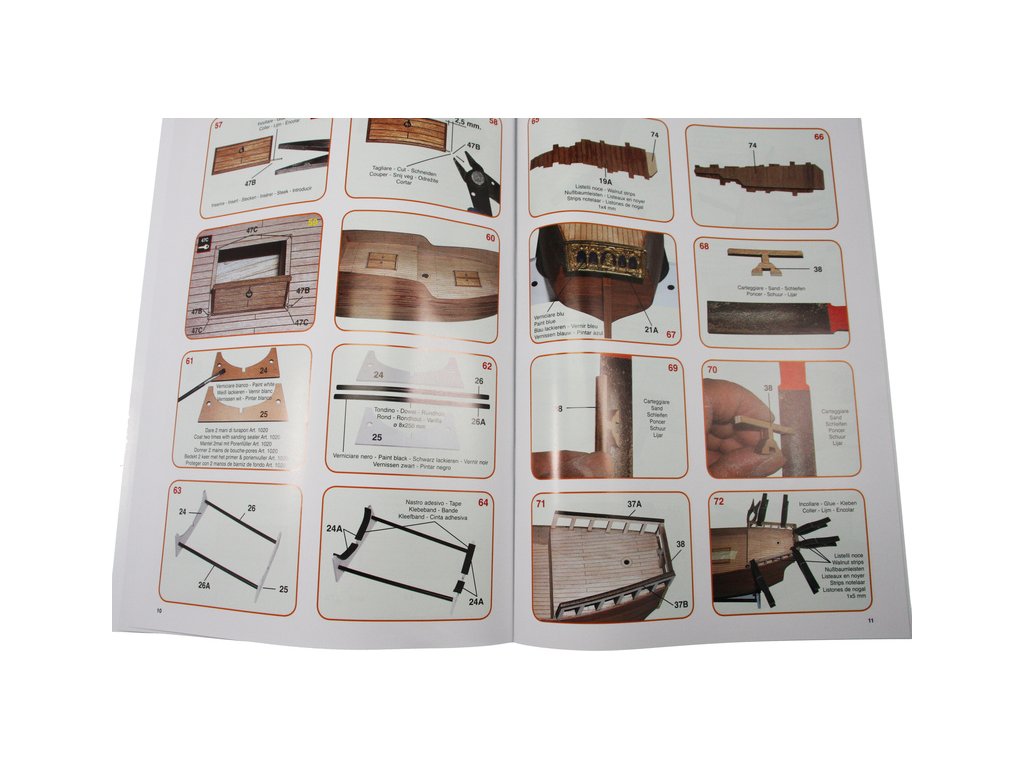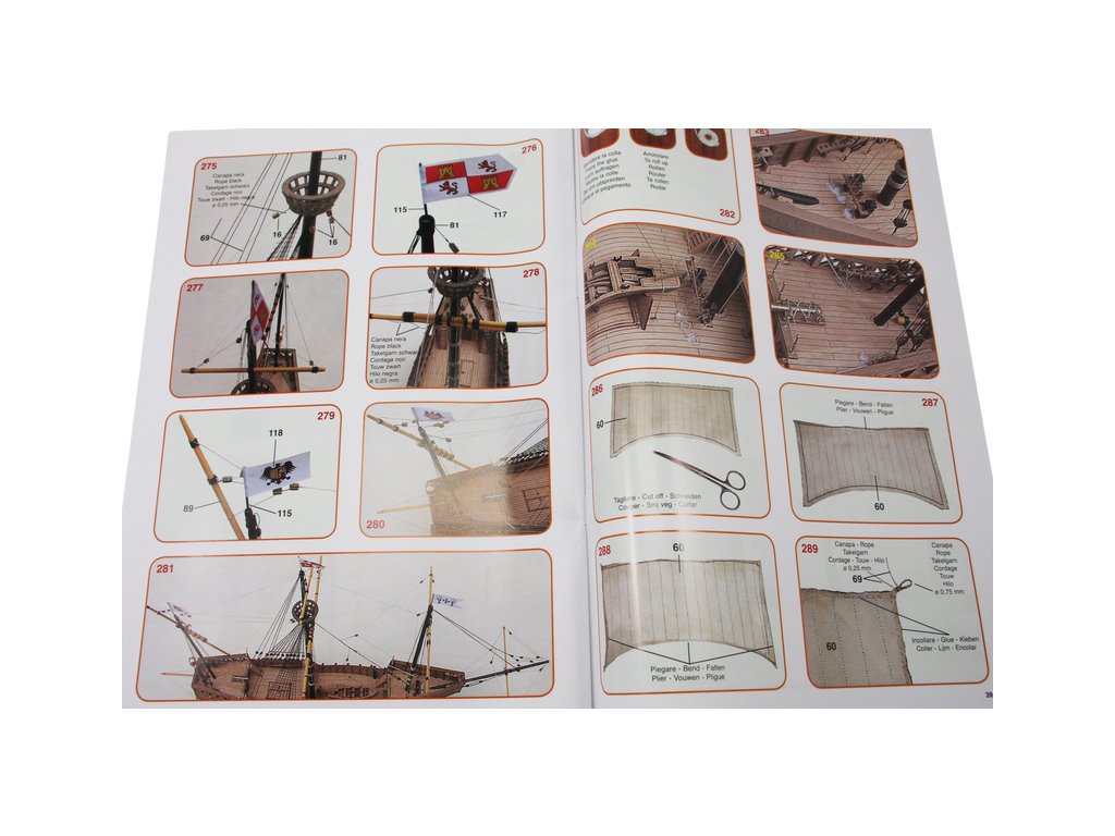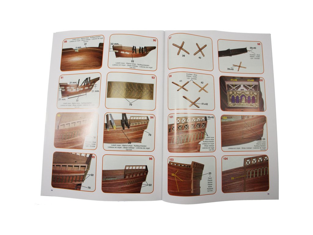 Set obsahuje kompletní sadu výkresové dokumentace modelu v měřítku 1:1 s obrázky jednotlivých detailů. Na výkrese jsou v měřítku nakresleny montážní sestavy, jejich kompletace a to včetně stěžňů a ráhen a způsob vázání lanoví. Vícejazyčný postup stavby rámcově upravuje logické sestavení jednotlivých komponentů.
