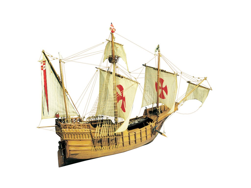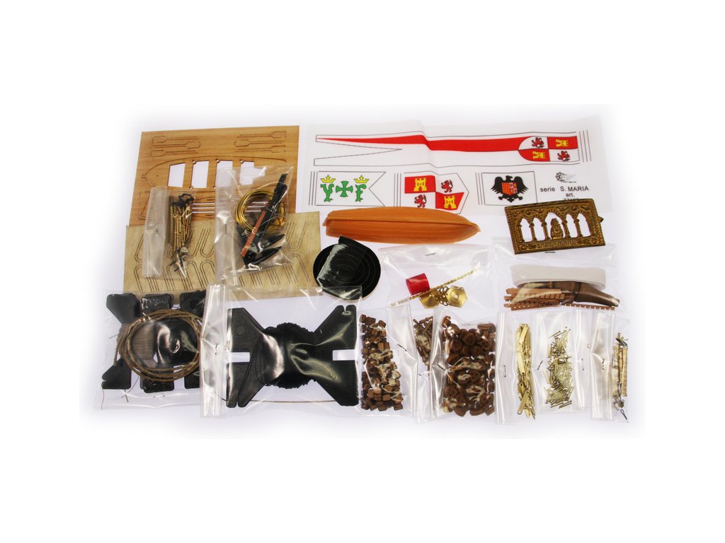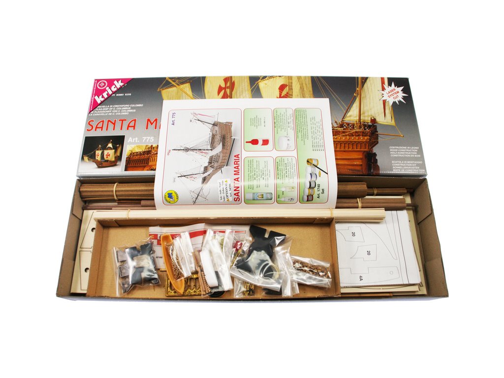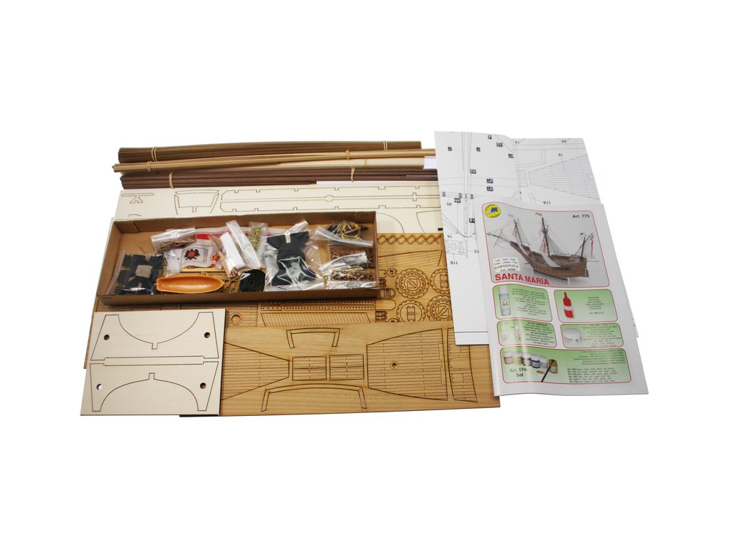 Stavebnice neplovoucího modelu známé plachetnice Mantua Santa Maria v měřítku 1:50 a délce 780 mm. Spolu s lodí Nina a Pinta tvořila flotilu Kryštofa Kolumba, se kterou v roce 1492 objevil nový svět. Kit obsahuje dřevěné díly, kovové odlitky dekorací a podrobné stavební plány.