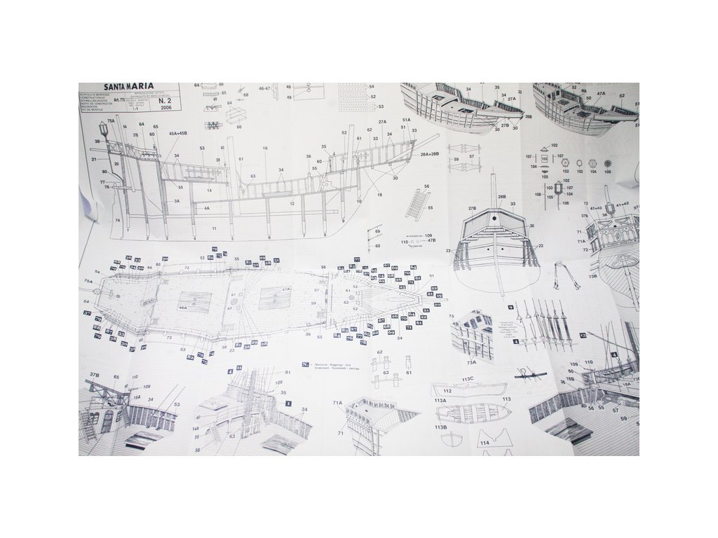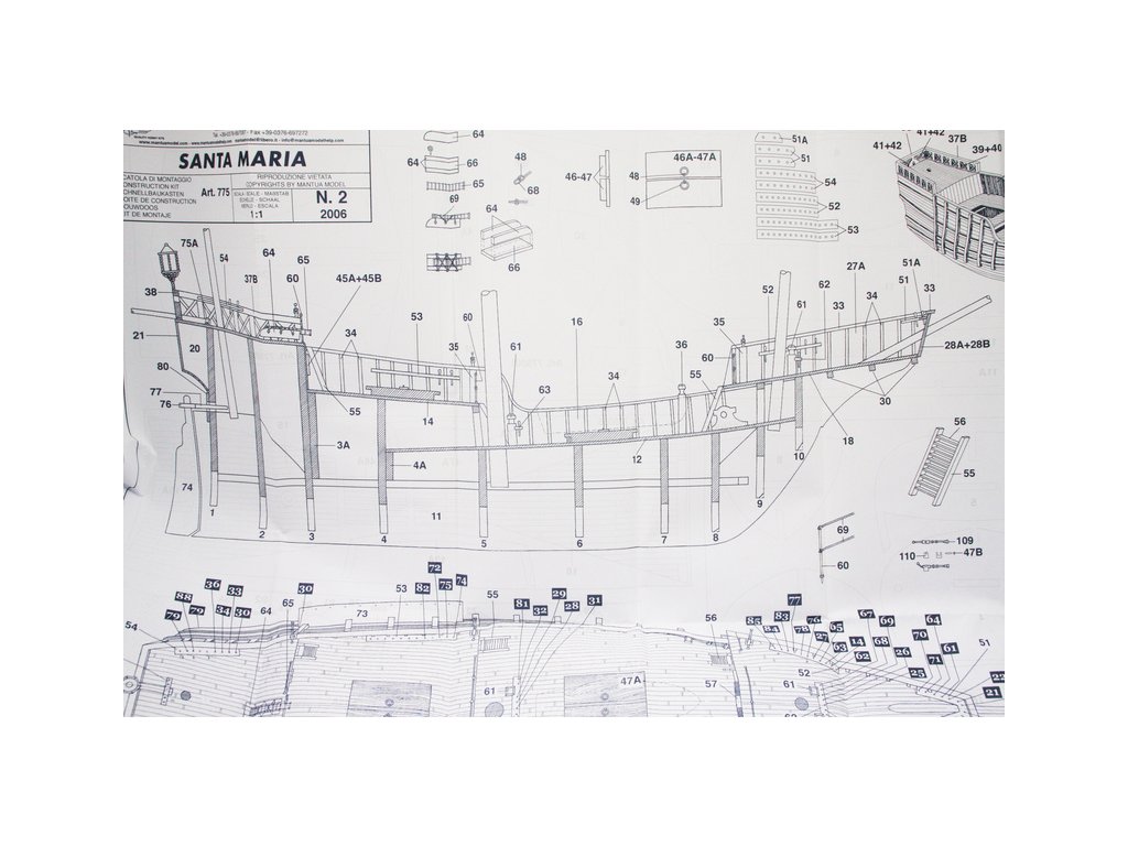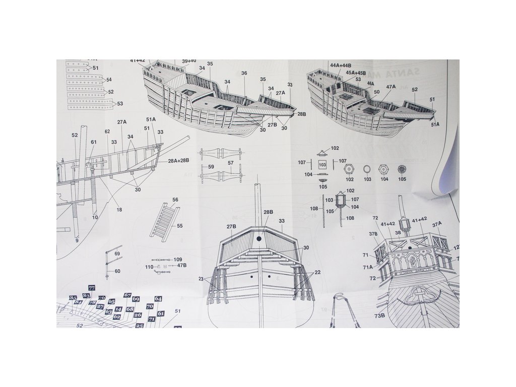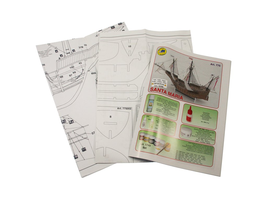 Stavebnice neplovoucího modelu známé plachetnice Mantua Santa Maria v měřítku 1:50 a délce 780 mm. Spolu s lodí Nina a Pinta tvořila flotilu Kryštofa Kolumba, se kterou v roce 1492 objevil nový svět. Kit obsahuje dřevěné díly, kovové odlitky dekorací a podrobné stavební plány.